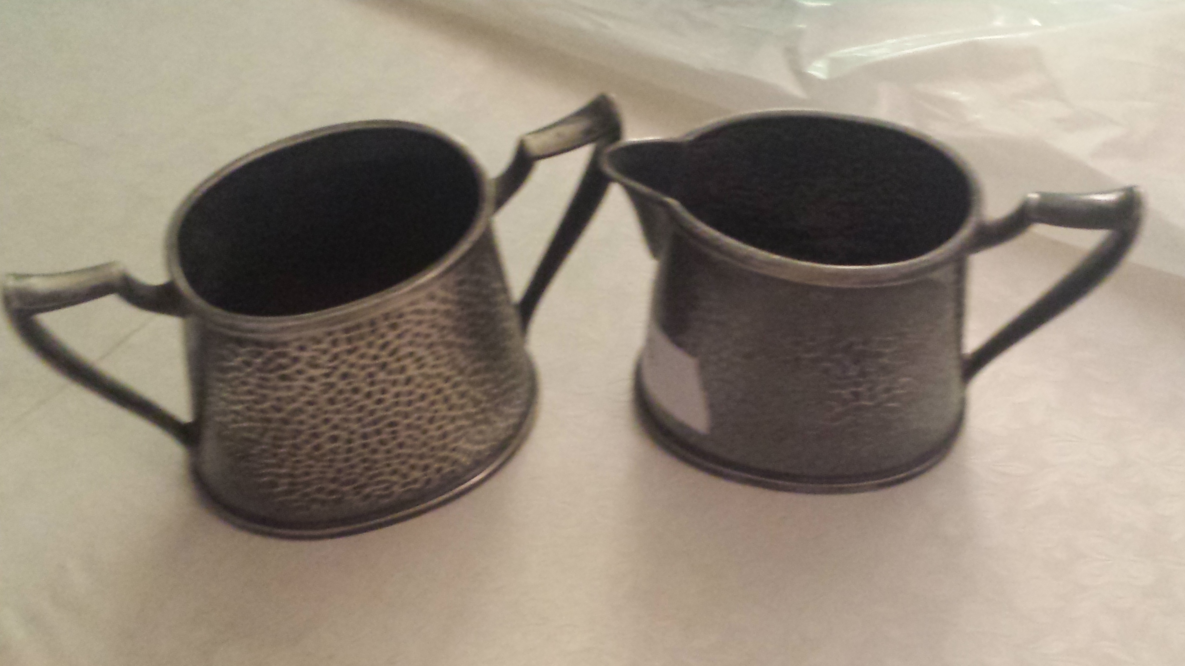 hammered look sugar and creamer unsure of material