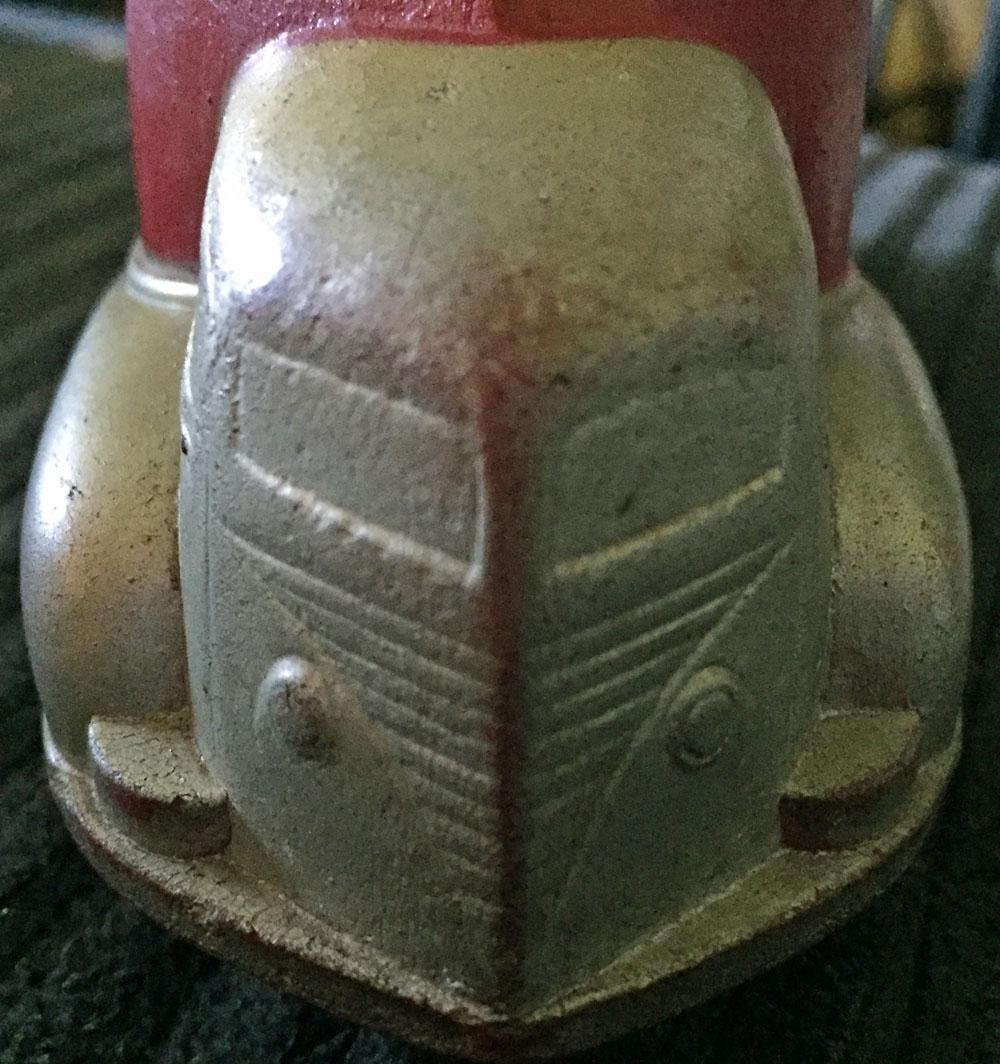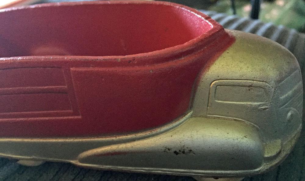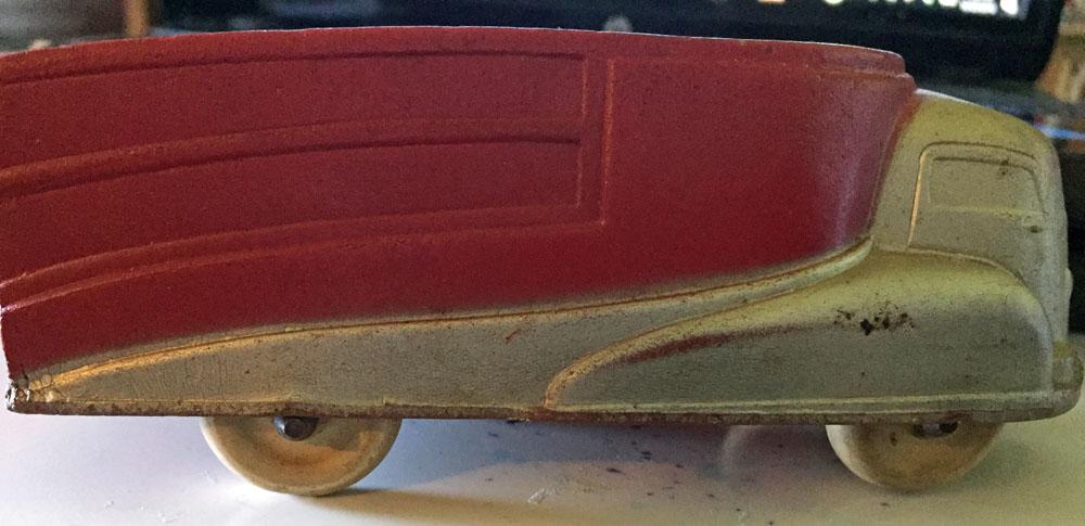 It is a hard rubber streamliner/futuristic truck. It is silver and red.