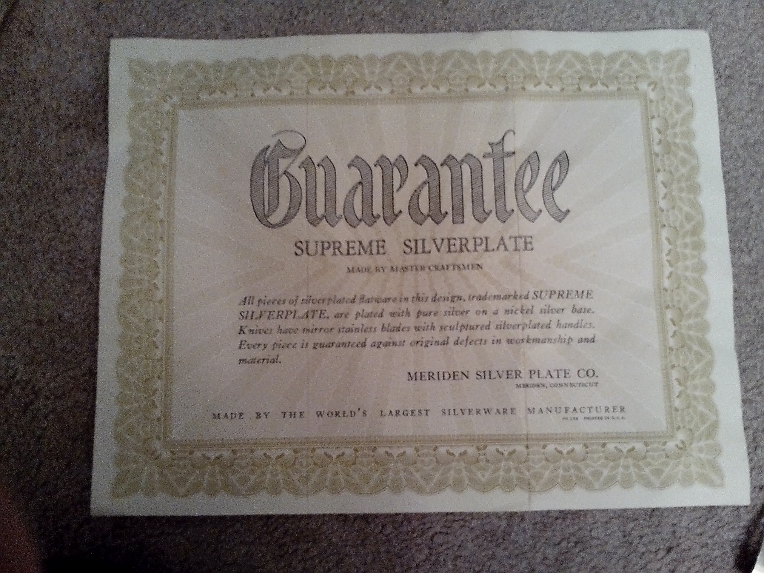 Re: SUPREME SILVERPLATE FLATWARE MERIDEN SILVER PLATE CO.