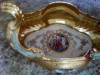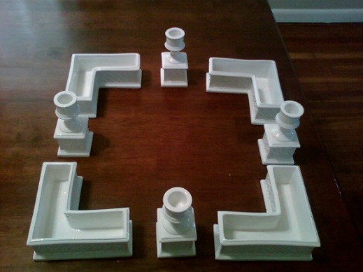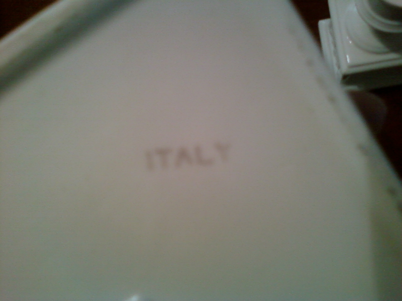 Reads "Italy" on the bottom of most of the pieces. Looks like a Surtout de table possibly without the mirrors or the tray. I am not sure. Can't seem to find anyone who can value it and can't find anything to compare it to. Purchased it at an estate sale and owner has no information on it only that it was old and it was passed to her. Remants of previous gold gilding or paint on the bottom and around the edges.