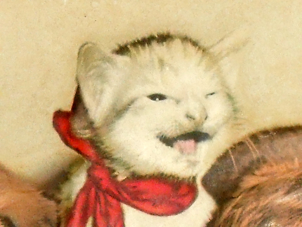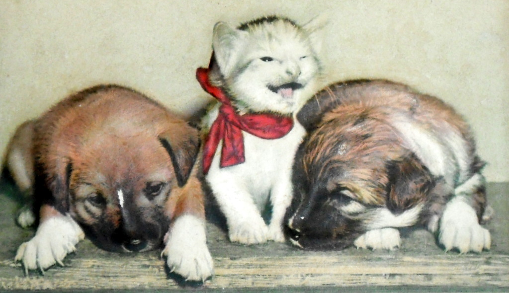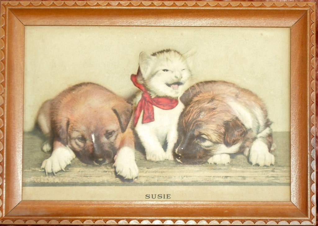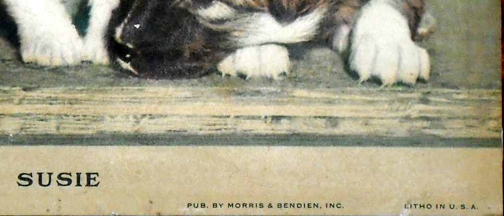 I don't know what the technical term is for this litho print. The cat and dogs are raised, like a 3 D effect.  The background and botom of pictures are flat.  It is quite heavy. There are a few nips in the print.
