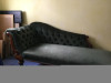 Unsure of history of this piece as our neighbor gave it to us as it was in their home when they purchased it and they did not want it. It has a unique shape to the back that resembles a chaise lounge but the 2 arms make it more of a long sofa.