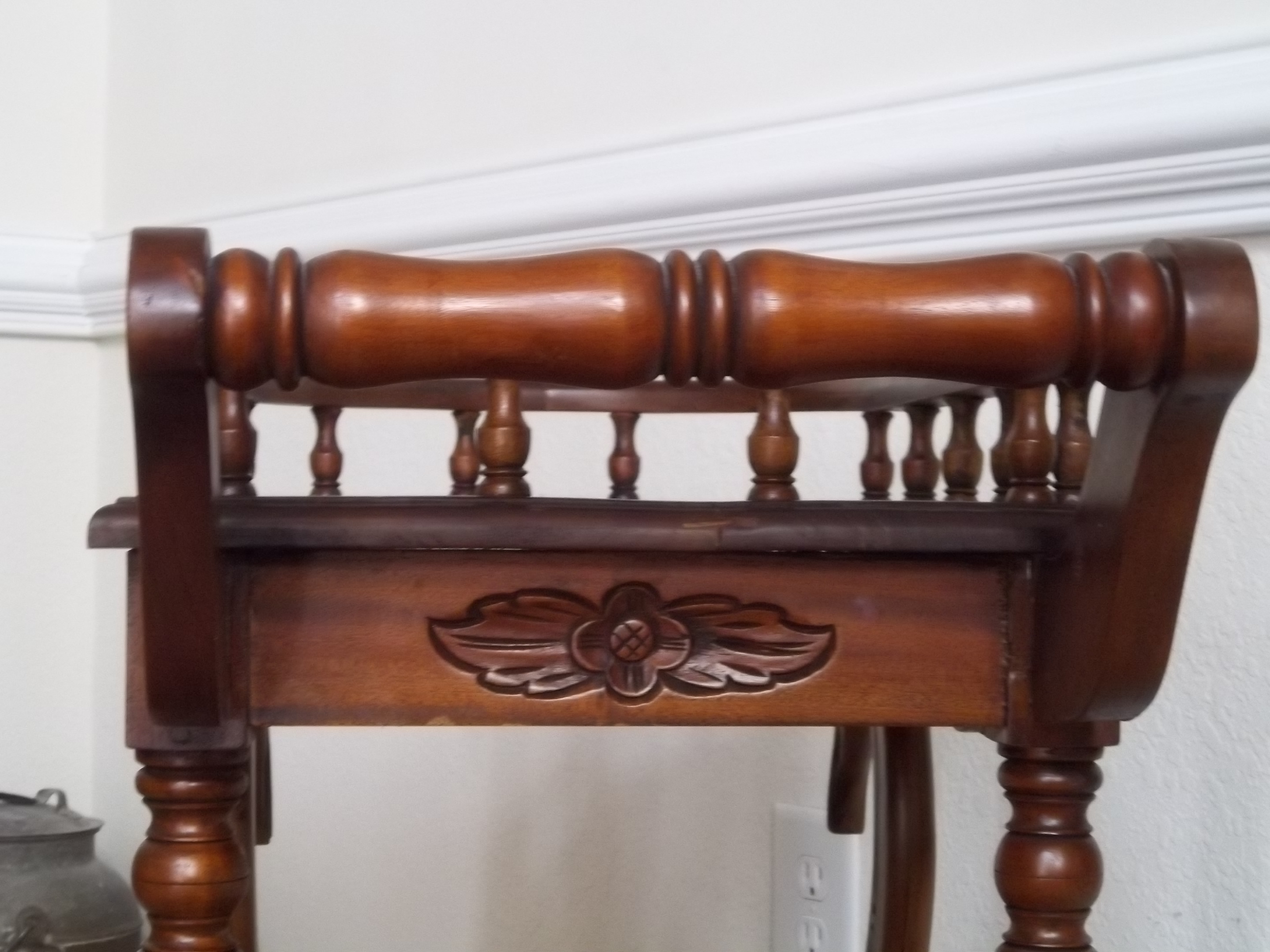 Deminsions are 28Lx14Wx28H Made of dark hardwood. No distinguishing marks and age is unknown.