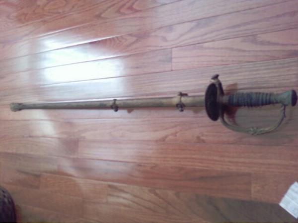 There are more pictures than listed. The sword is extremely detailed. The blades are dull on the sides but the sword is sharp at the tip. I really believe the condition to be near excellent but it needs to be properly cleaned. I do not want to mess it up so I will wait to see if we can have it cleaned professionally. There is rust on the top part of the blade and some green buildup on certain parts. The person that he got it from years ago said that he had it for twenty years. I do not think the original guy bought it new either. I think it may have been an heirloom of some sort. If it is authentic, it may have been ceremonial or something. It has very good weight to it, especially where the handle is. It also has the sheath, which is also very detailed.