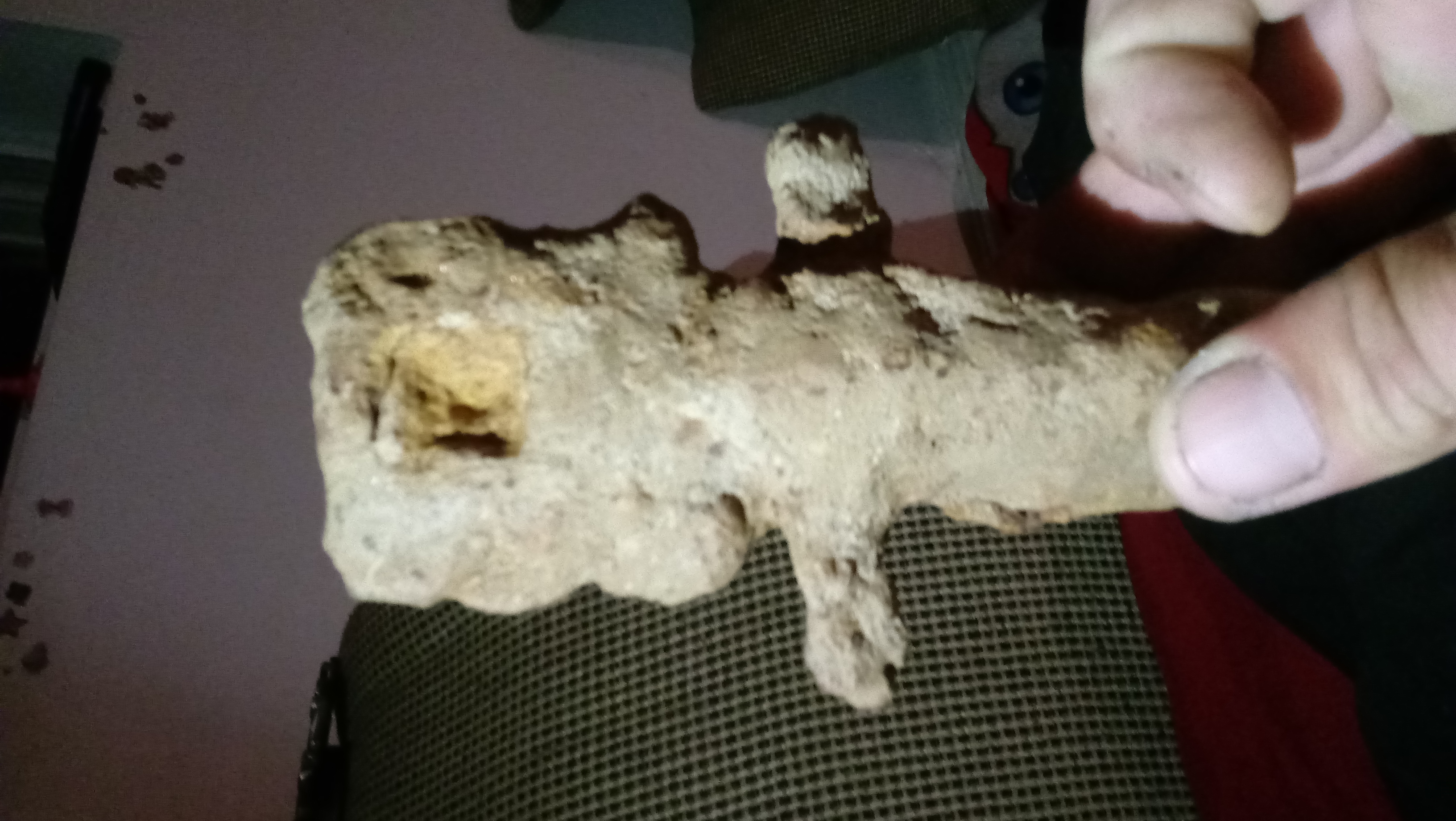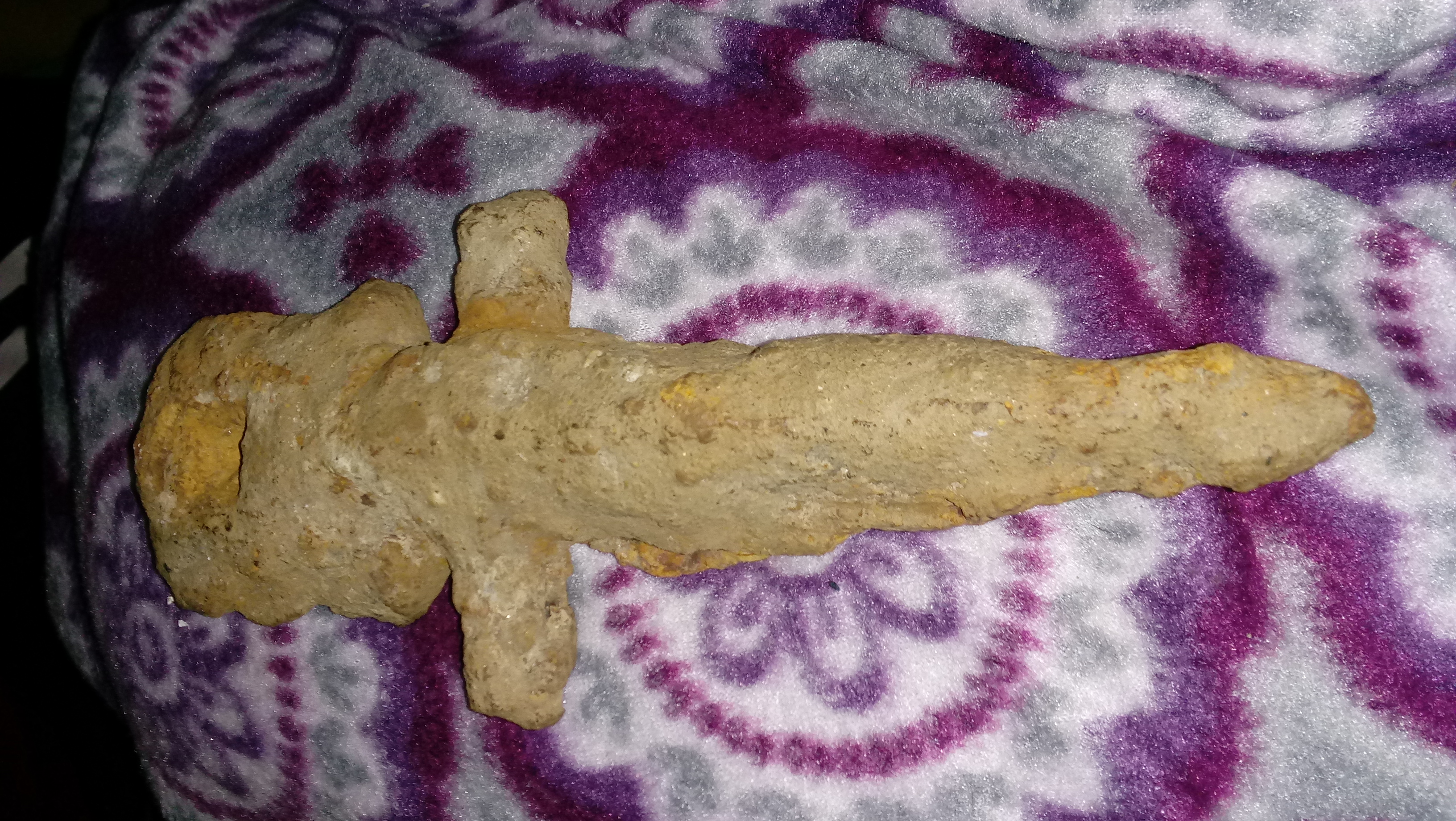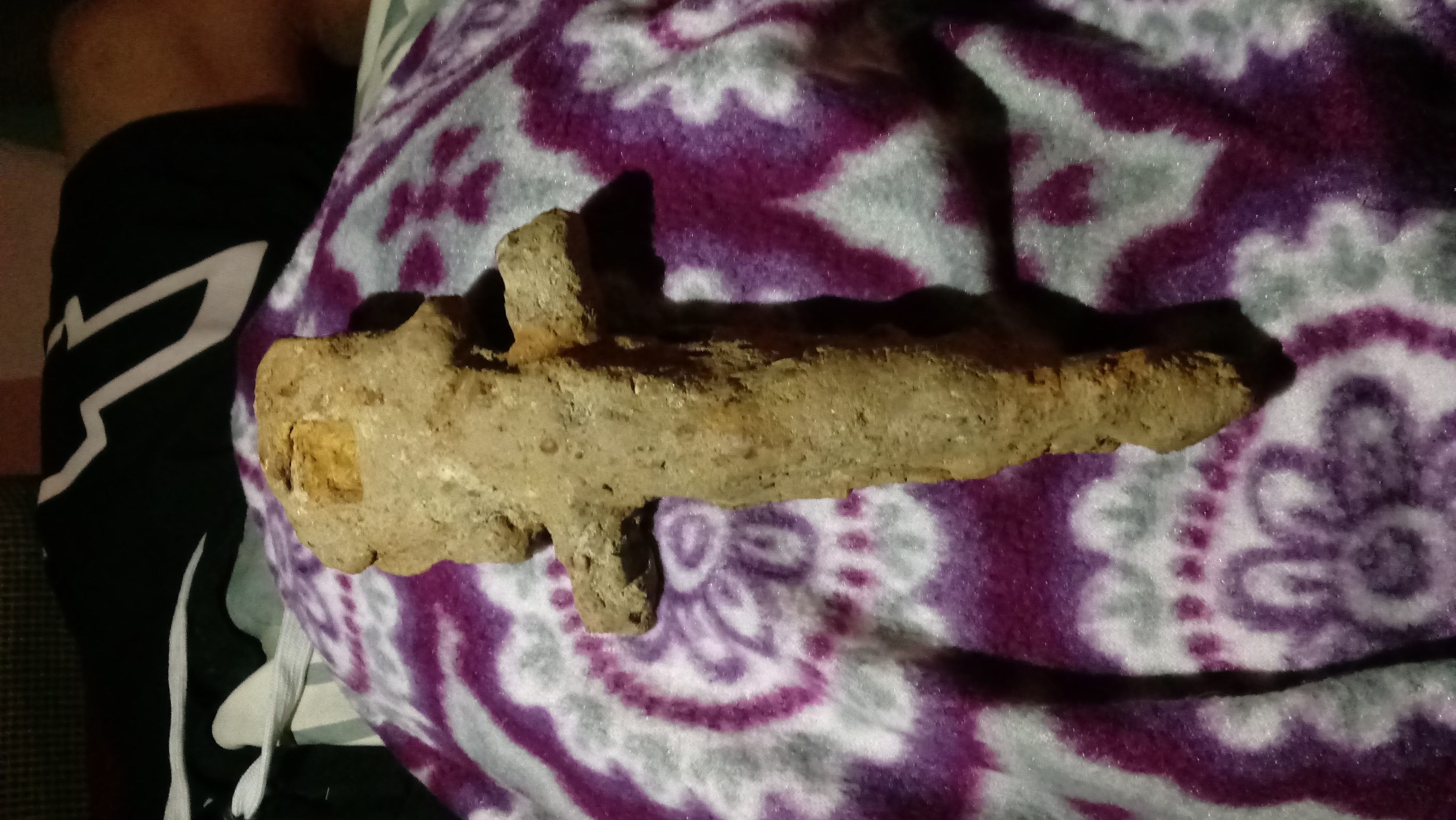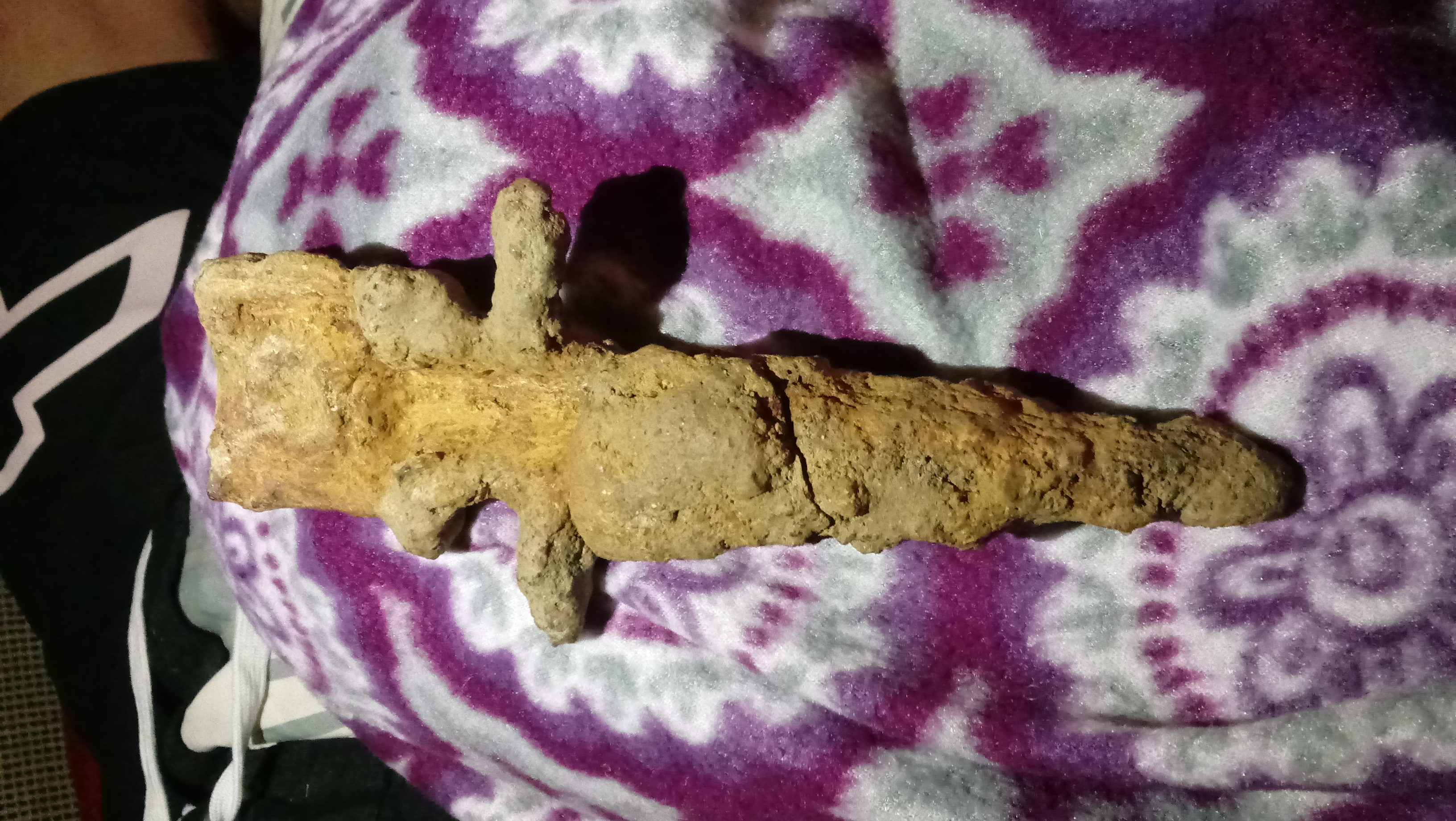 Sword handle covered in rock debris. Found while excavating ground at an old farm