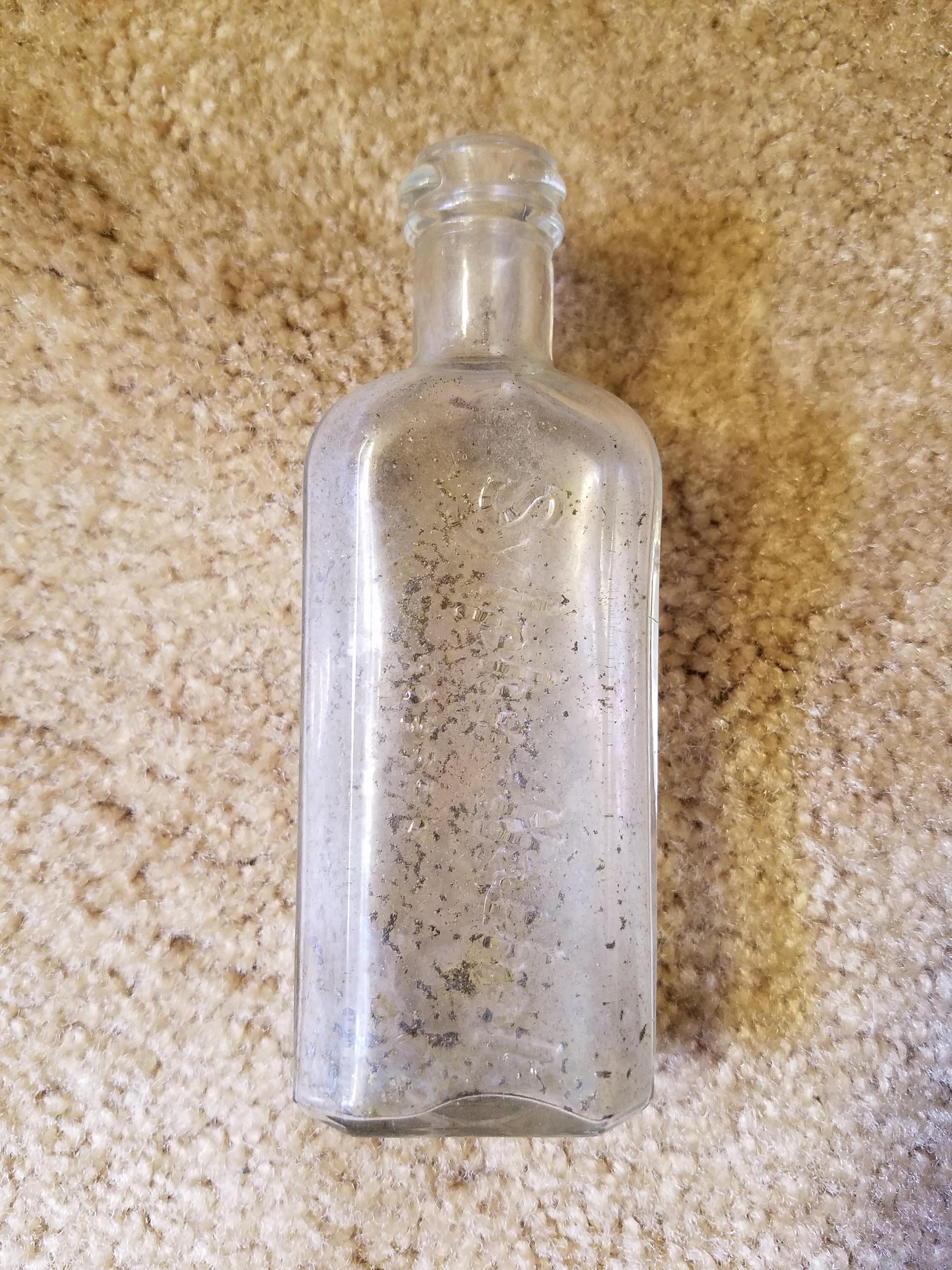 Not sure how old this bottle is. About 6" tall. Clear. Says cabots under on side.