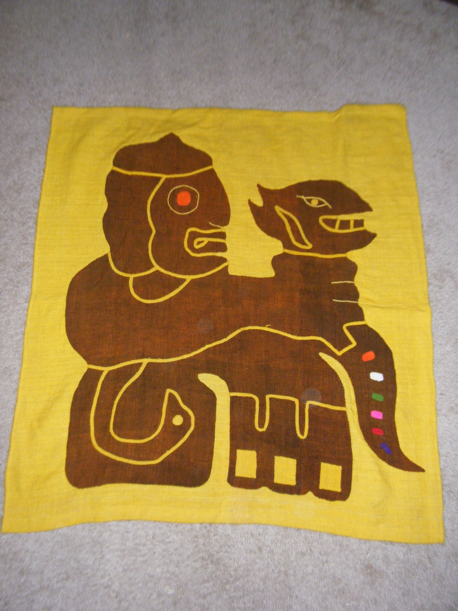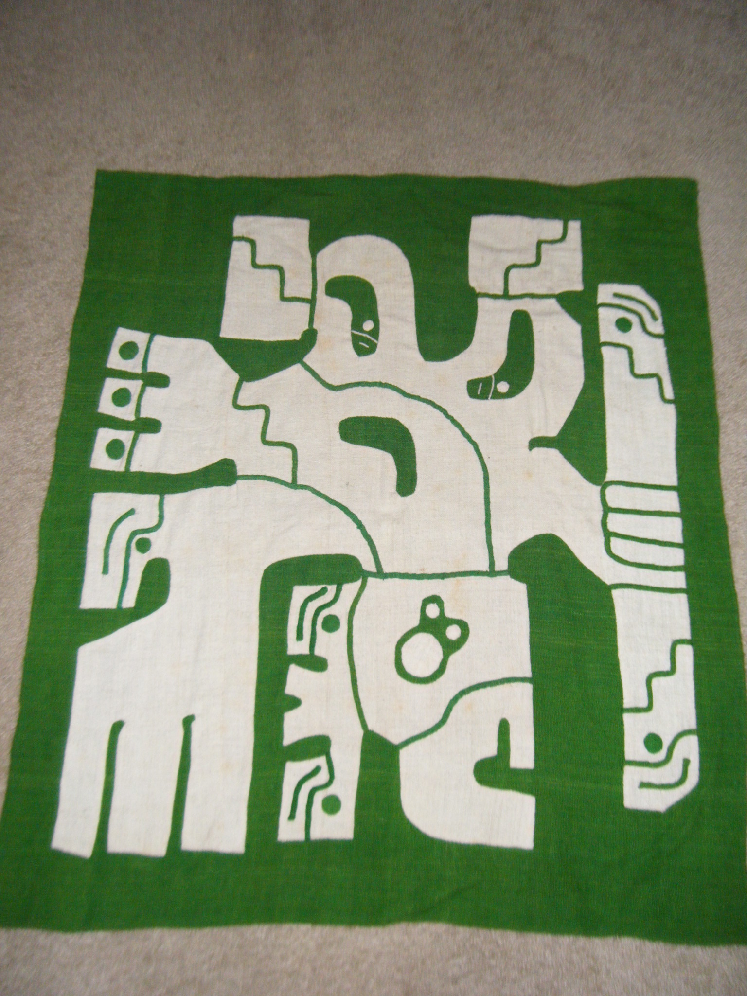 Two designs or symbols on fabric.