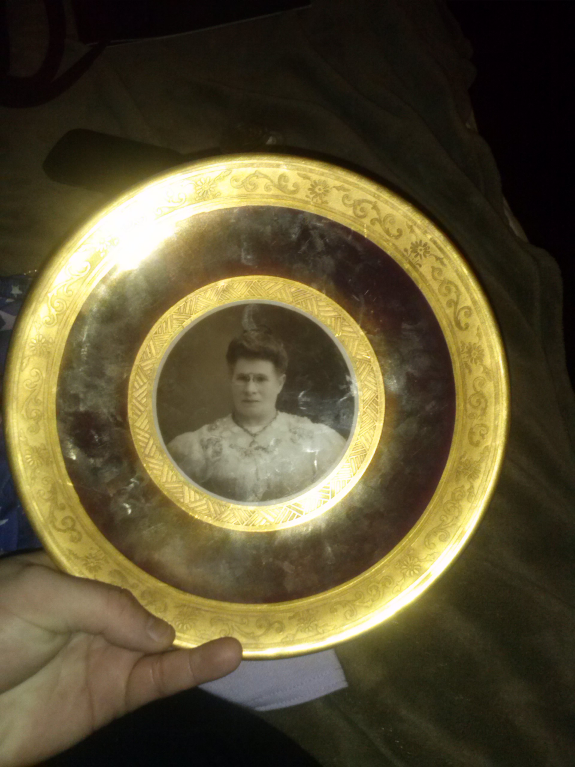 Black and white photo of victorian woman on plate