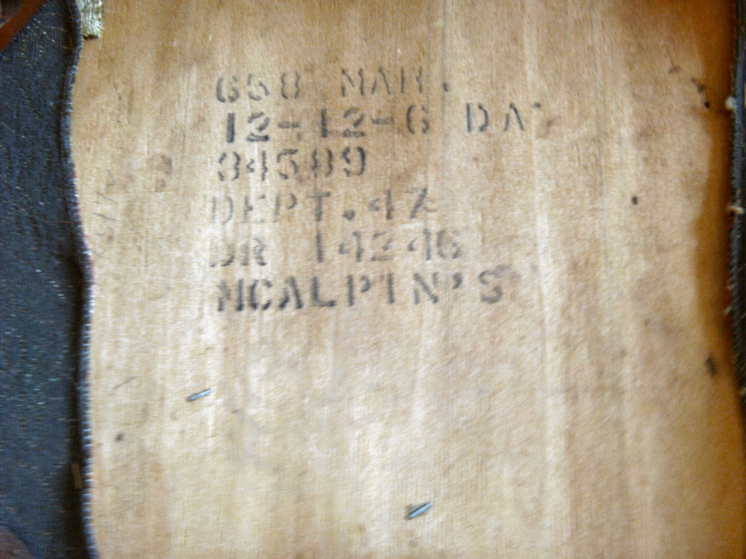 I have four chairs and matching table that I beleive are from Mcalpin's around the turn of the last century. They are in good shap and no restoration has been attempted. I'm only showing one chair because the rest is in storage. I cant find anyone local to give me any information. Looking at the bottom of the chair I think the manufacture date is 1906, but again just my guess. I dont want to end up selling these at a yard sale for little of nothing so hopeing someone can give me an idea of a fair price. Thanks for your time.