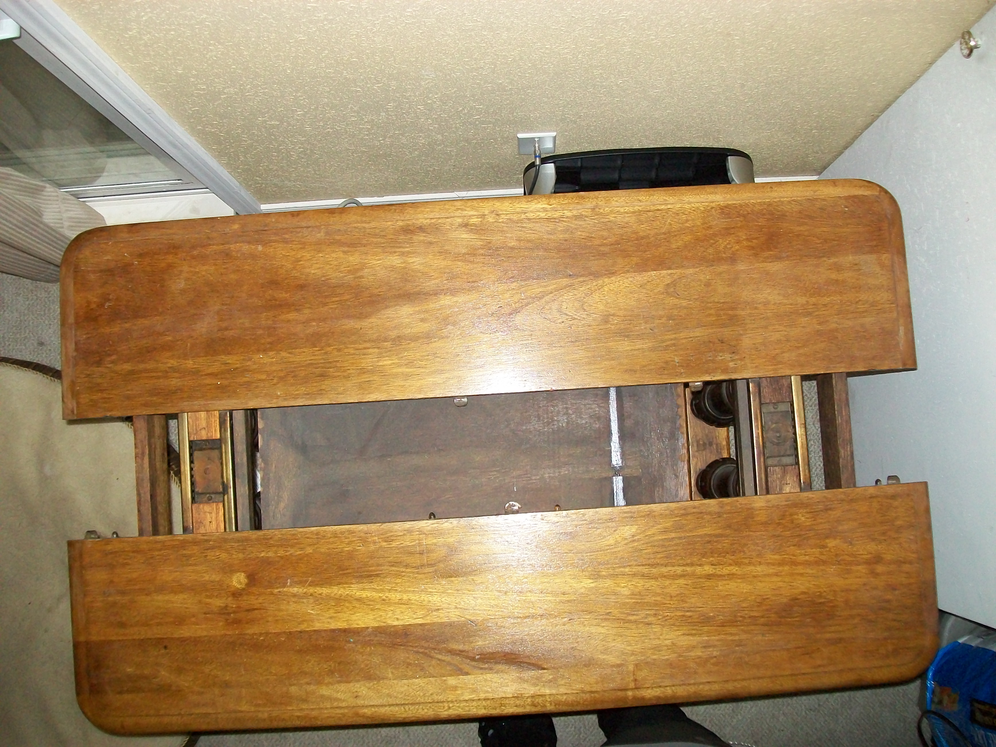 Since mine is considerably larger than yours, I wonder what it would be appraised for. I am seriously considering selling it. My daughter isn't interested in it. Would love to know more history about it. I'm amazed that I came upon the exact same table.