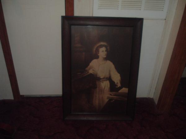 This is a very large Tabor-Prang print of Jesus at twelve. I has printed on the bottom right corner, copyright 1910 Tabor-Prang Art co.