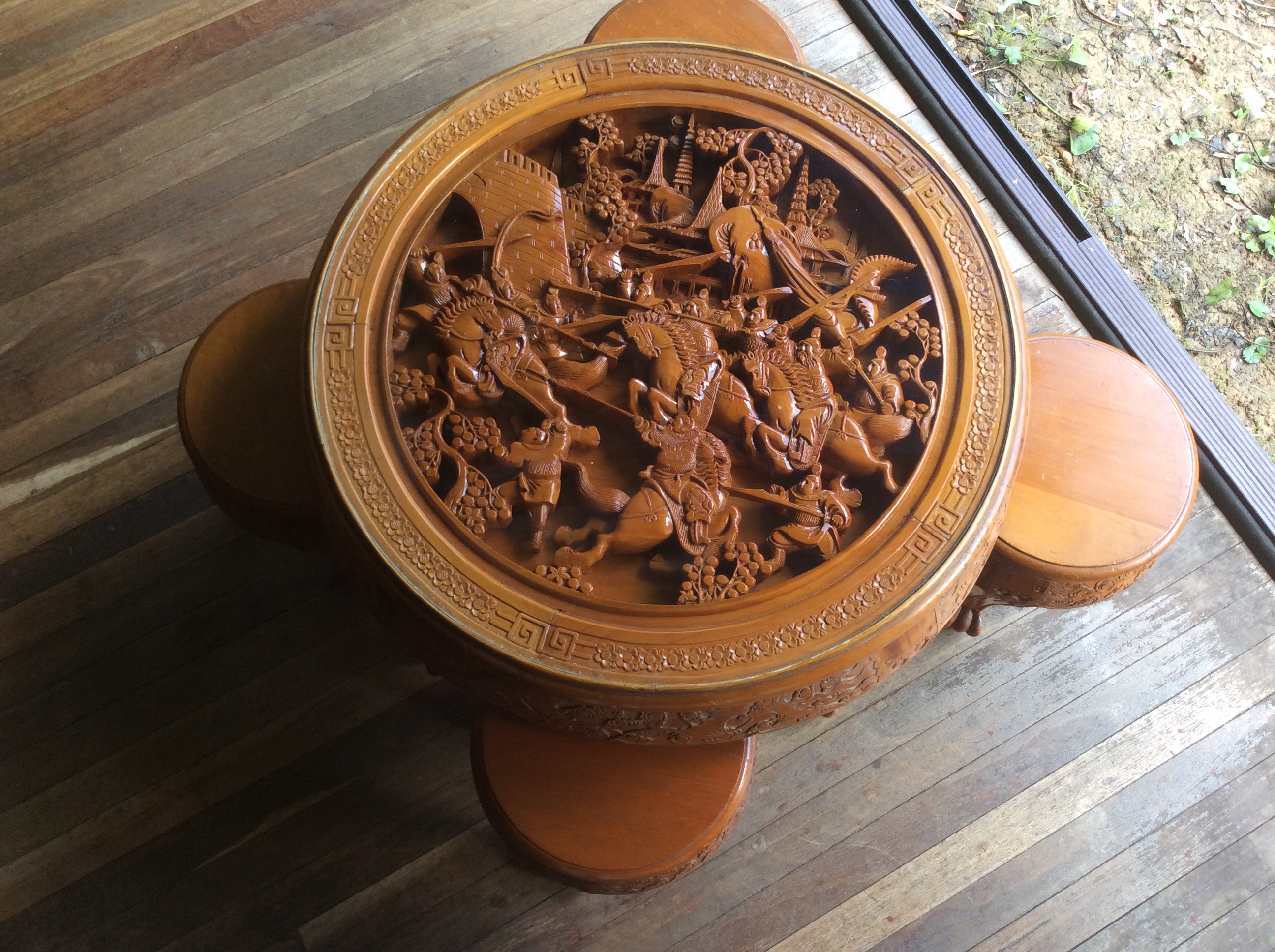 Made by Morison’s in Taiwan, It depicts a battle with warriors and horses etc and maybe Great Wall carved in 3 dimensions.