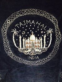Black velvet Taj Mahal wall hanging.. done in gold thread & gold beading