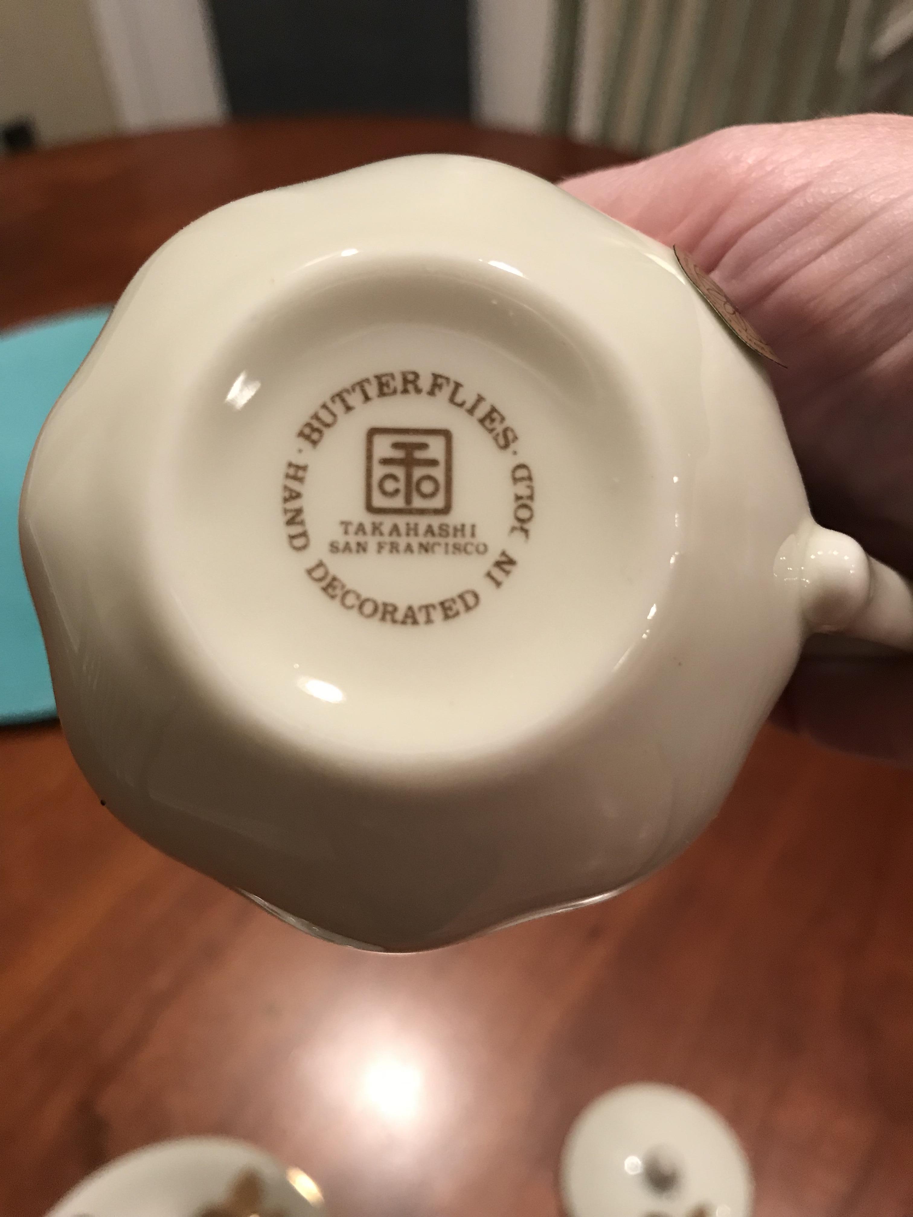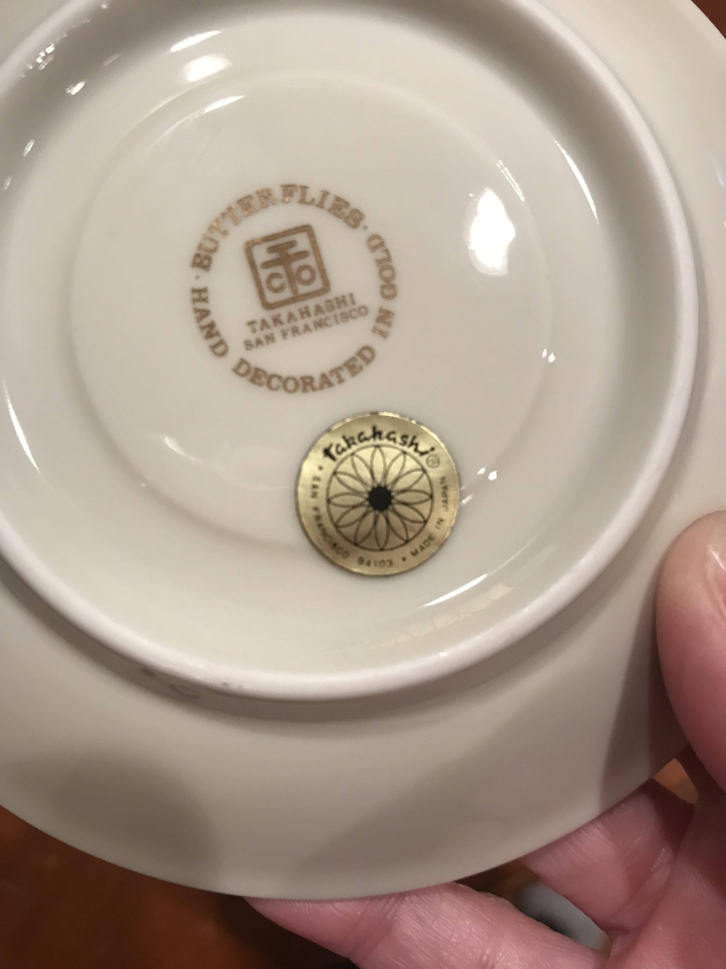 Set of 8 Takahashi small cups, saucers and lids. Cups are very small. I was told they r for serving Japanese food. China with gold trim. Never used, still in original box.