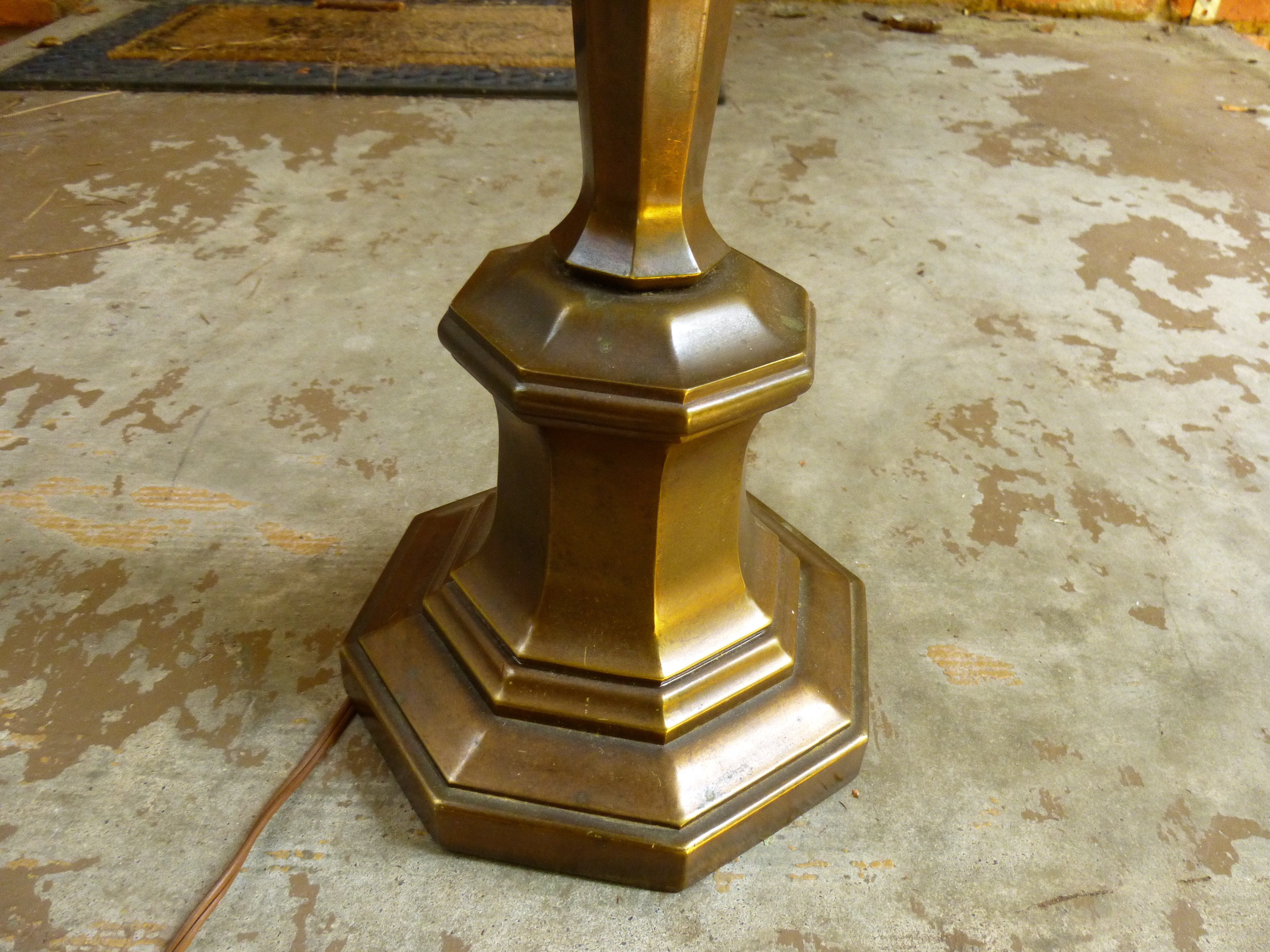 This lamp seems to be made of metal and is pretty heavy. It is about 37" tall. The sticker on the bottom is not complete, but it says Underwriters Laboratories Listed Portable Lamp Issue no. 99,0... Mutual -Sunset Lamp Manufactoring Company. The Harp brand is Chilo, and the socket says Leviton. I've looked for markings on the lamp but I can not seem to find any. Any information about this lamp would be appreciated. Thanks!