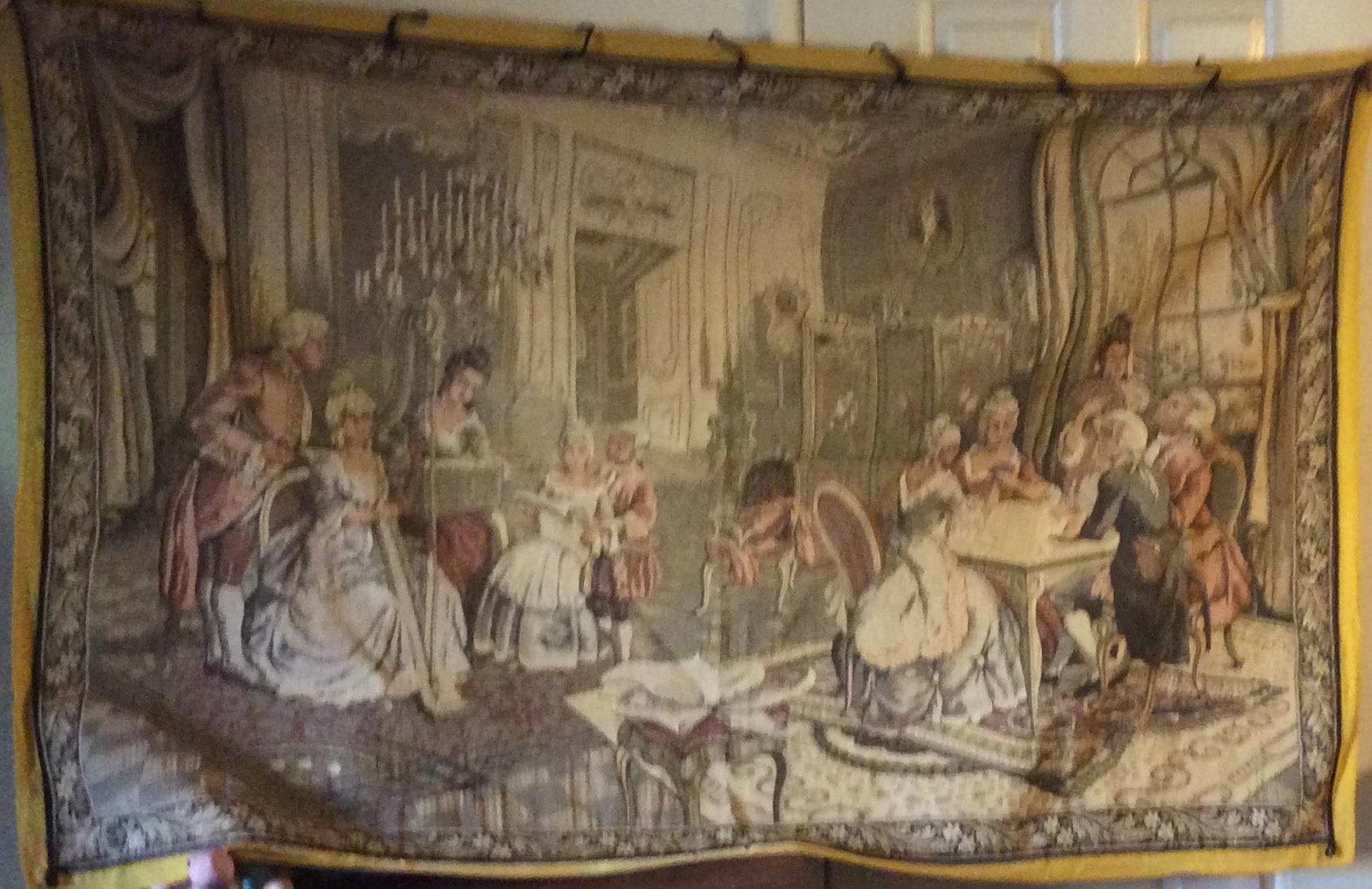I found this tapestry among my deceased aunt's stuff. I would like to know if this is: antique, vintage, or just an inexpensive decoration. It measures 77" by 50" and it doesn't seem to be damaged in any way.