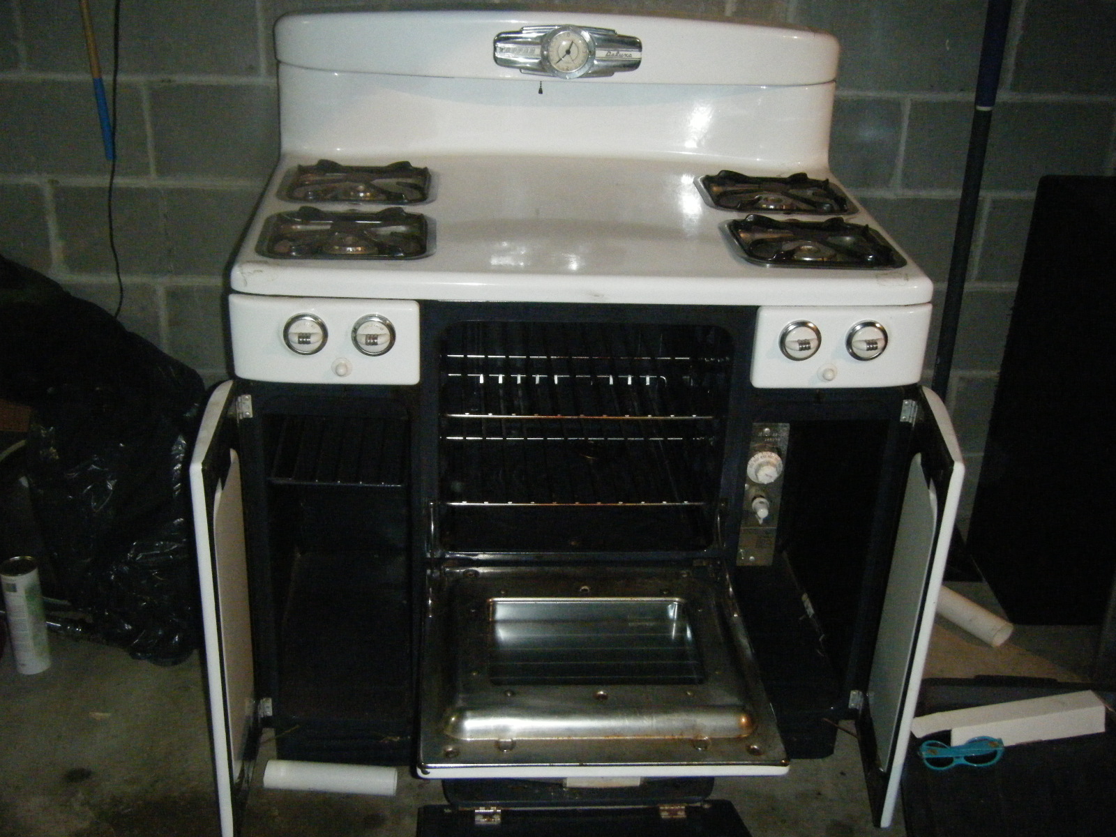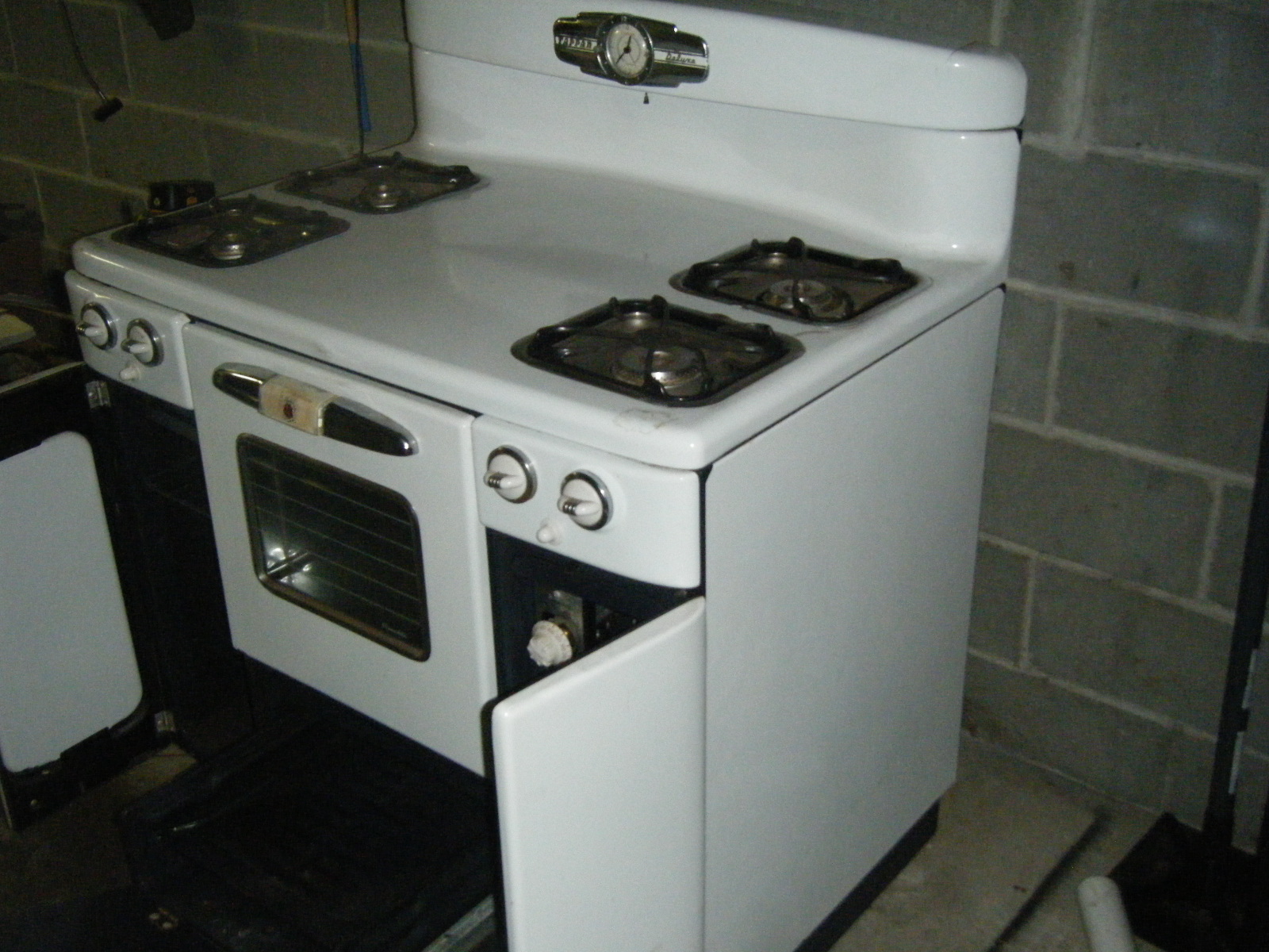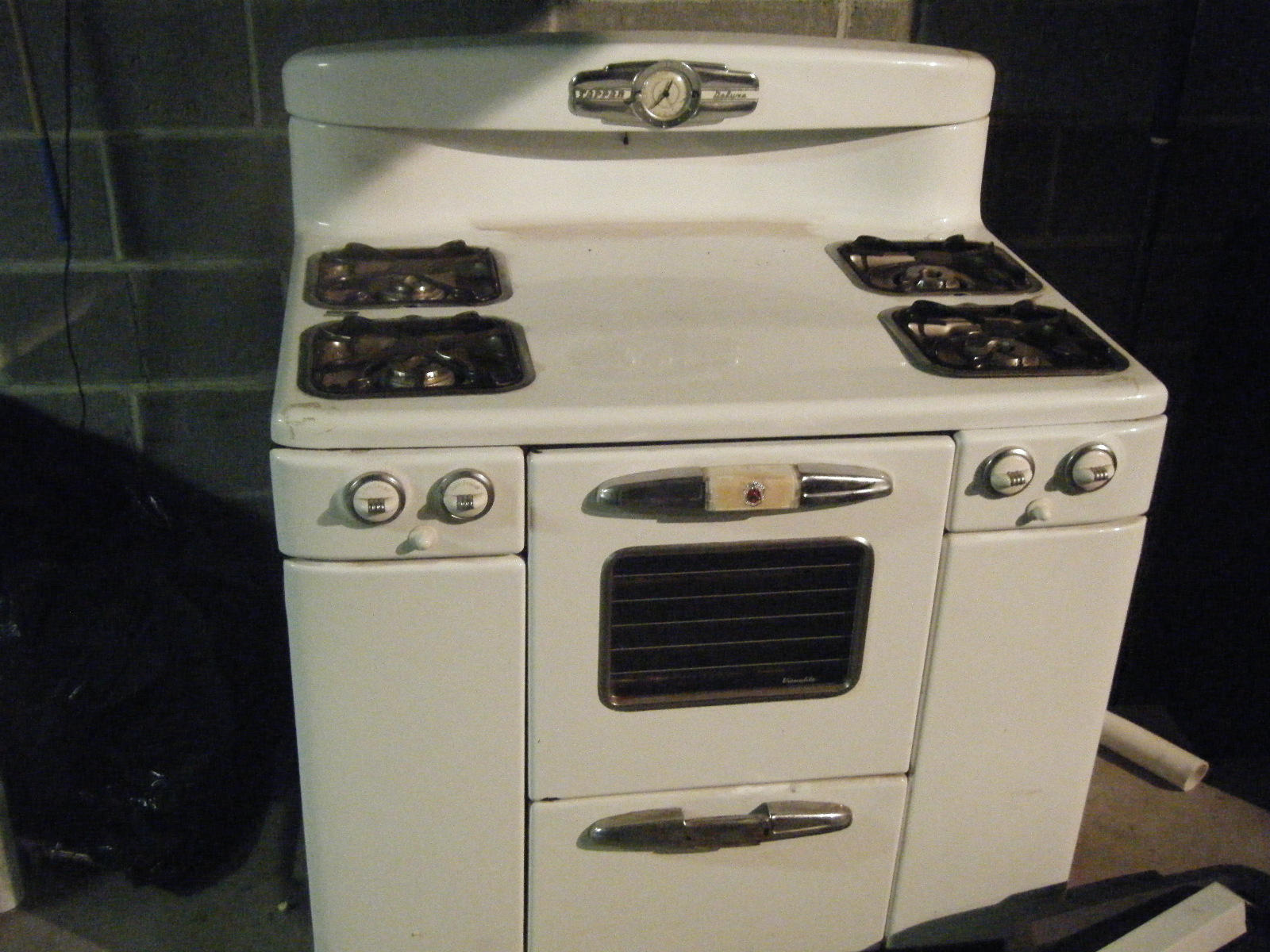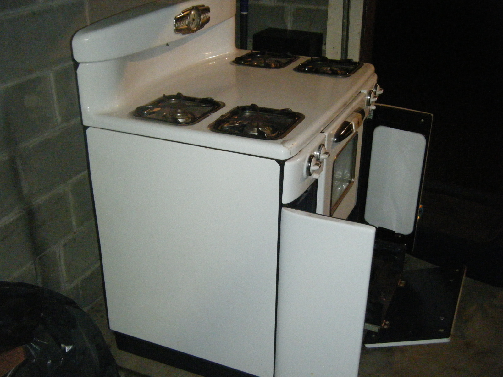 stove its in great lookin ondition no scratches on either side . missing a small screw where the clock is at and the handle from the bottom
