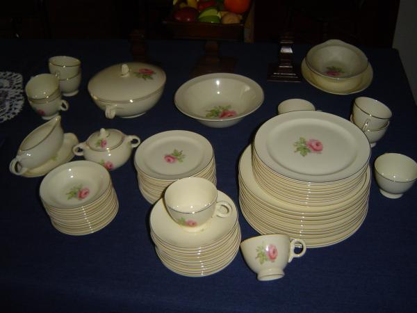 Taylor, Smith & Taylor china set Luray style, Rose with Gold Trim, 1947.
