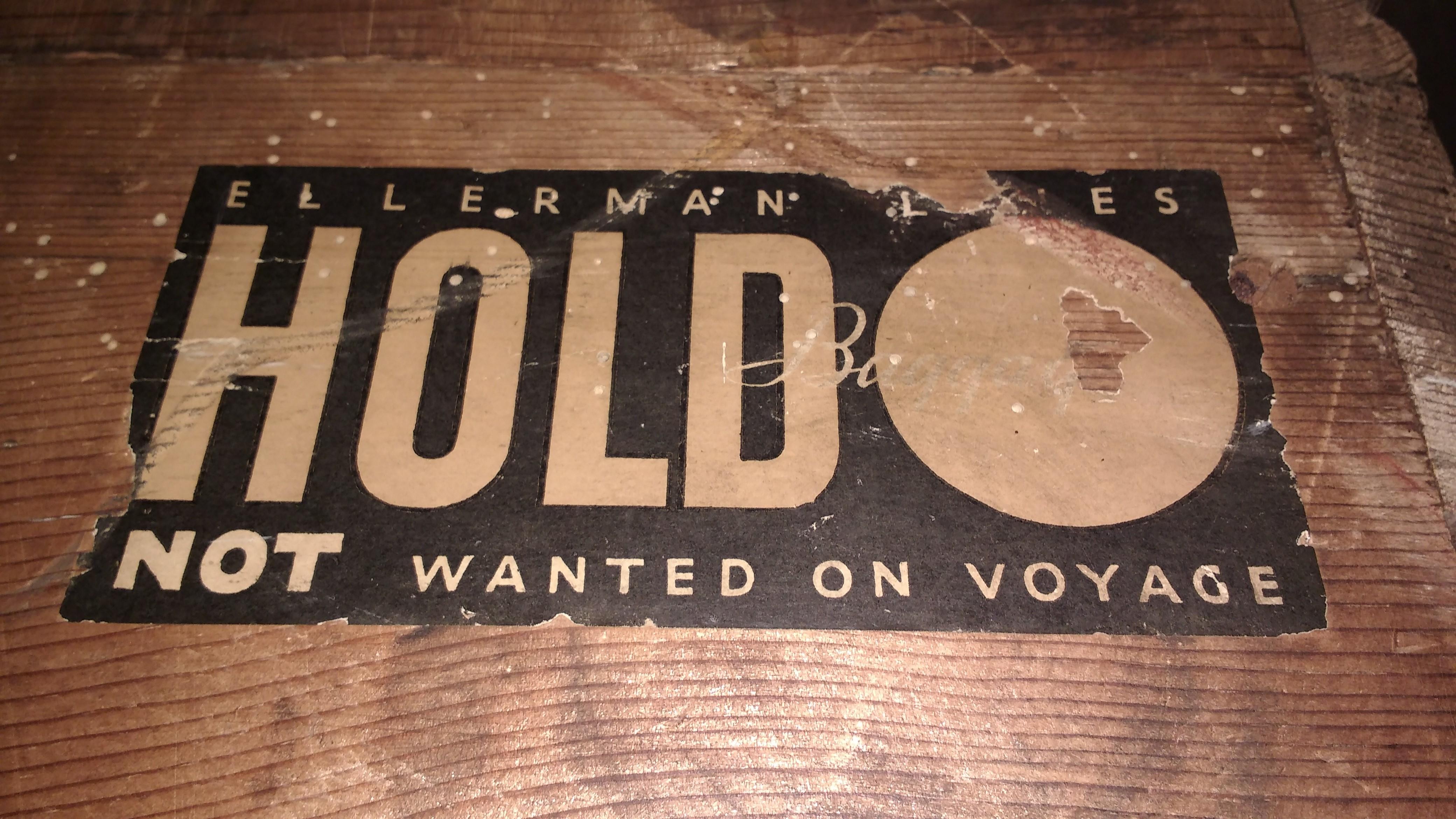 Labels show details including that it was stored in the hold and not required during voyage.