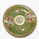 The saucer measures 4" D,,the cup is 1.5" High and 2" in D