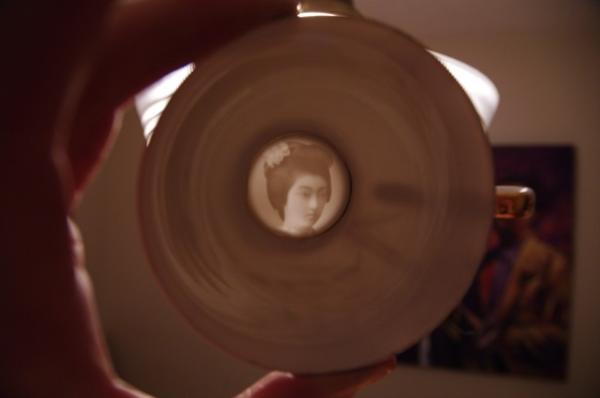 This is a tea set that has gold leaf detailing, WATTS WARE stamped on the bottom but the unique factor is that if you hold the tea cup up to the light and look through it it shows the face of a Chinese figurine. I have plenty of pictures so email me and I can send you them.