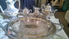 lage tea pot with rope trim along with matching creamer and sugar containers all are dated and stamped by company as 1883 FB silver company # 2310...