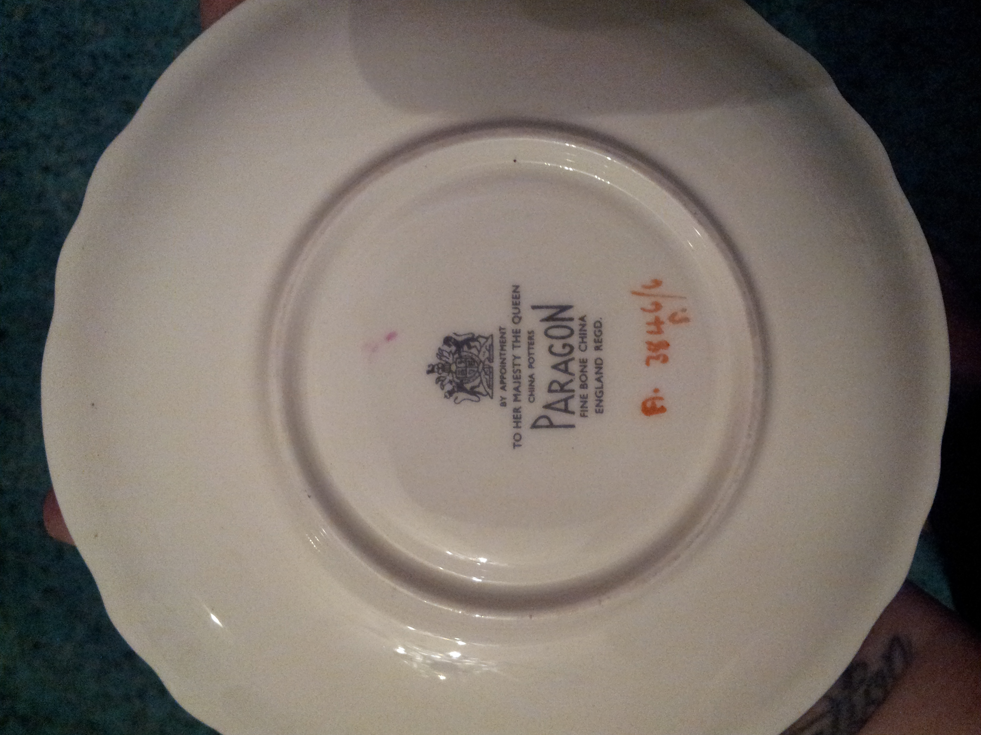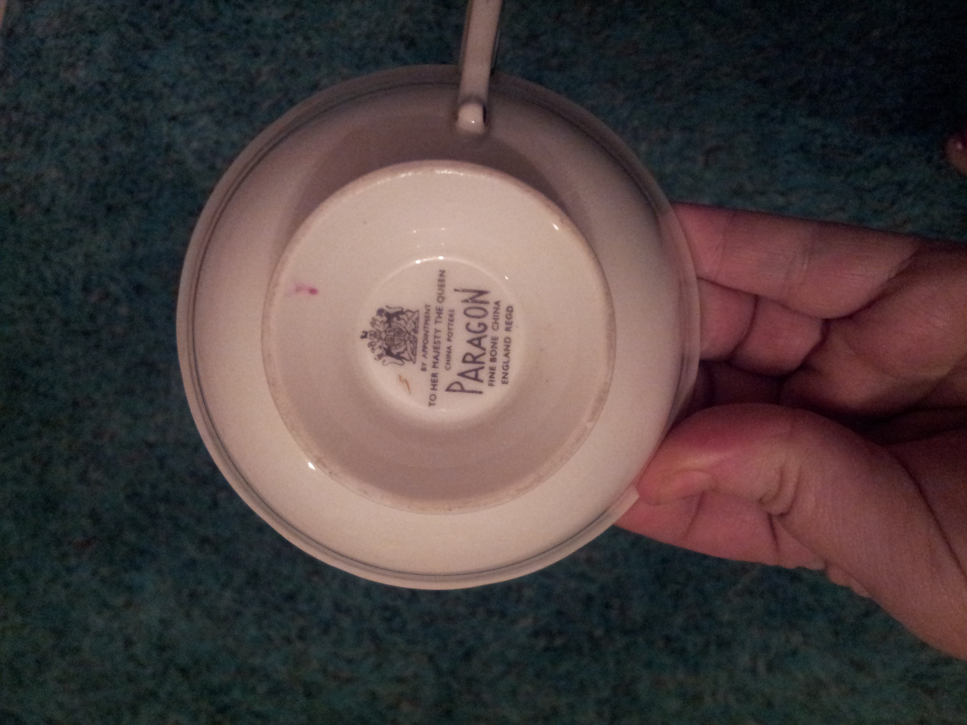 Distinguishing marks By appointment to Her majesty the Queen China potters Paragon Fine bone china England -