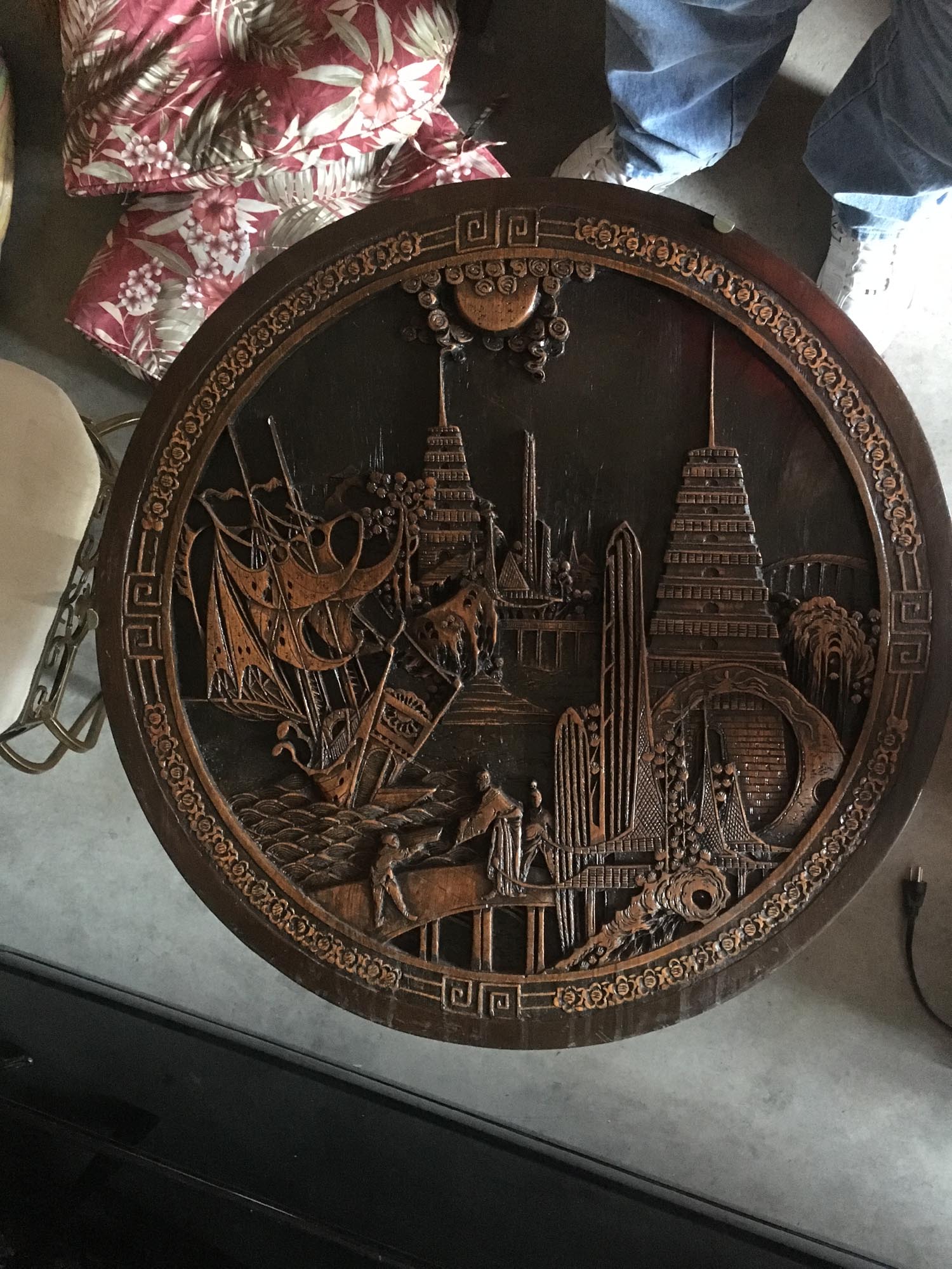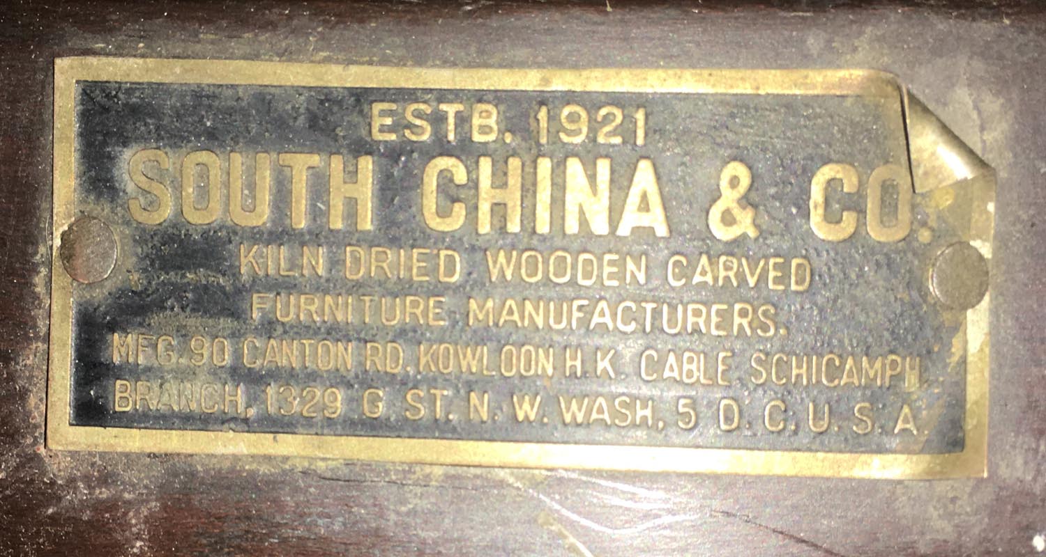 My Father inlaw pulled this down from the attic and wanted to know if I could find out what it is worth.  It is from the South China Co.  I assume he purchased in Hawaii when he was stationed there during the Korean War.  He was also in the military (ARMY) and deployed to Korea.  Can anyone help.  I have looked for any furniture from the south china co with no sucess.  I believe it is made of TEAK>