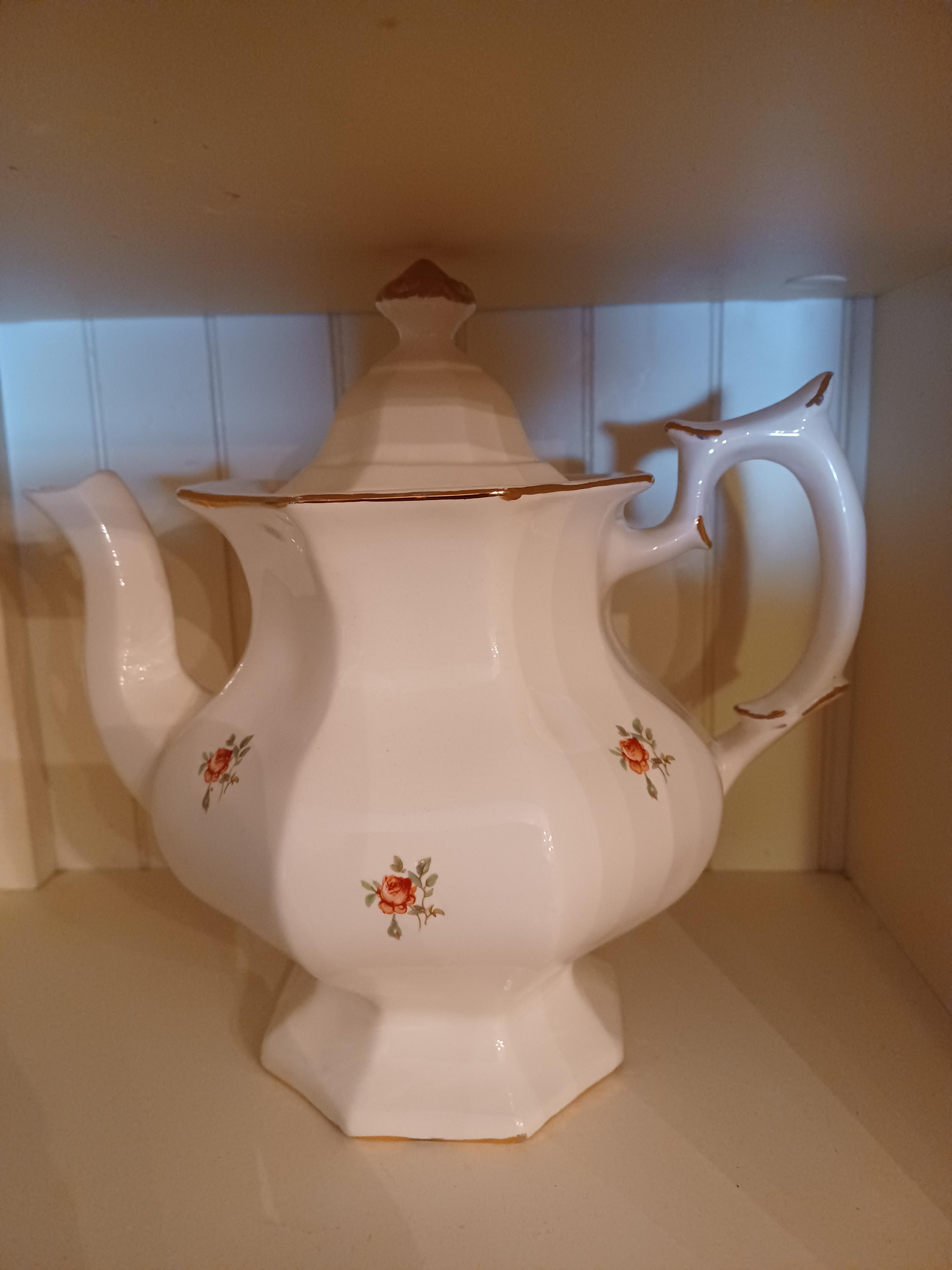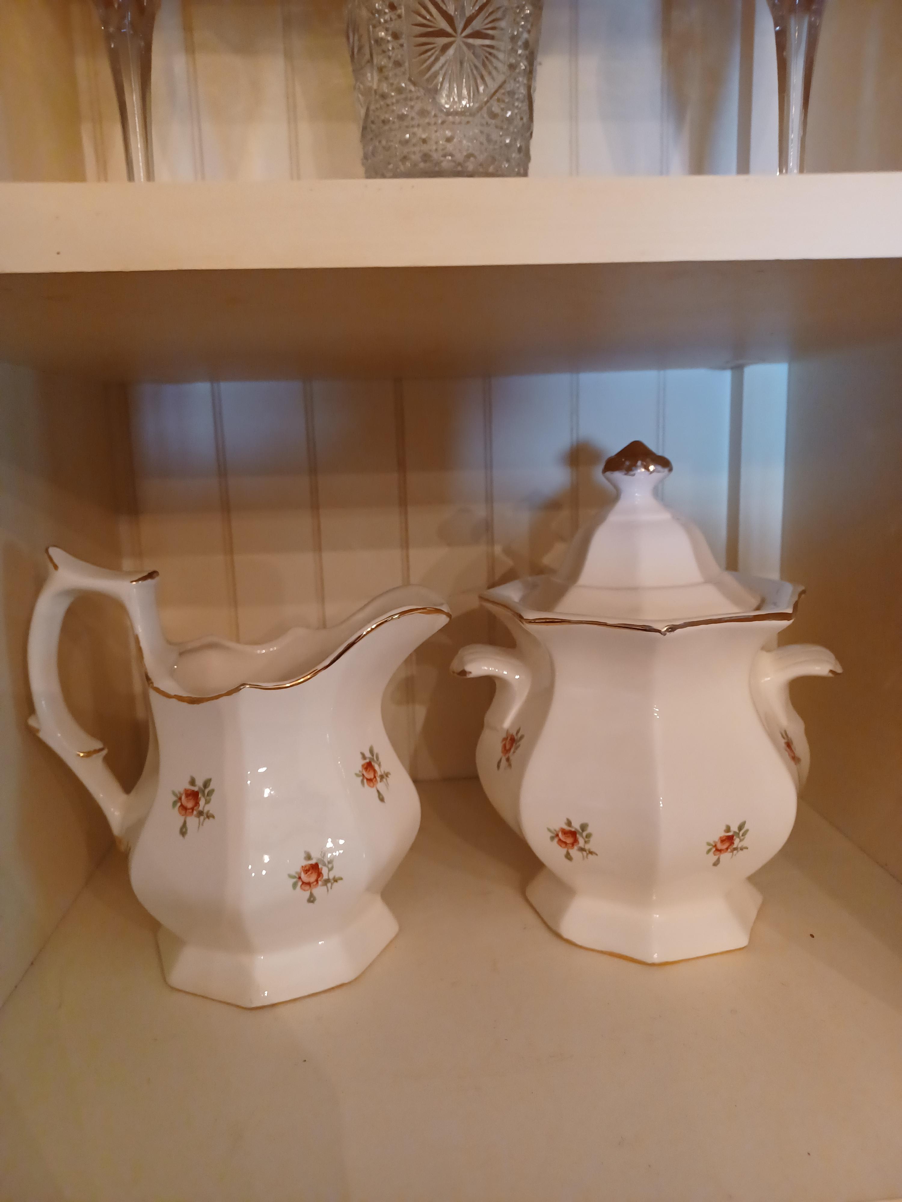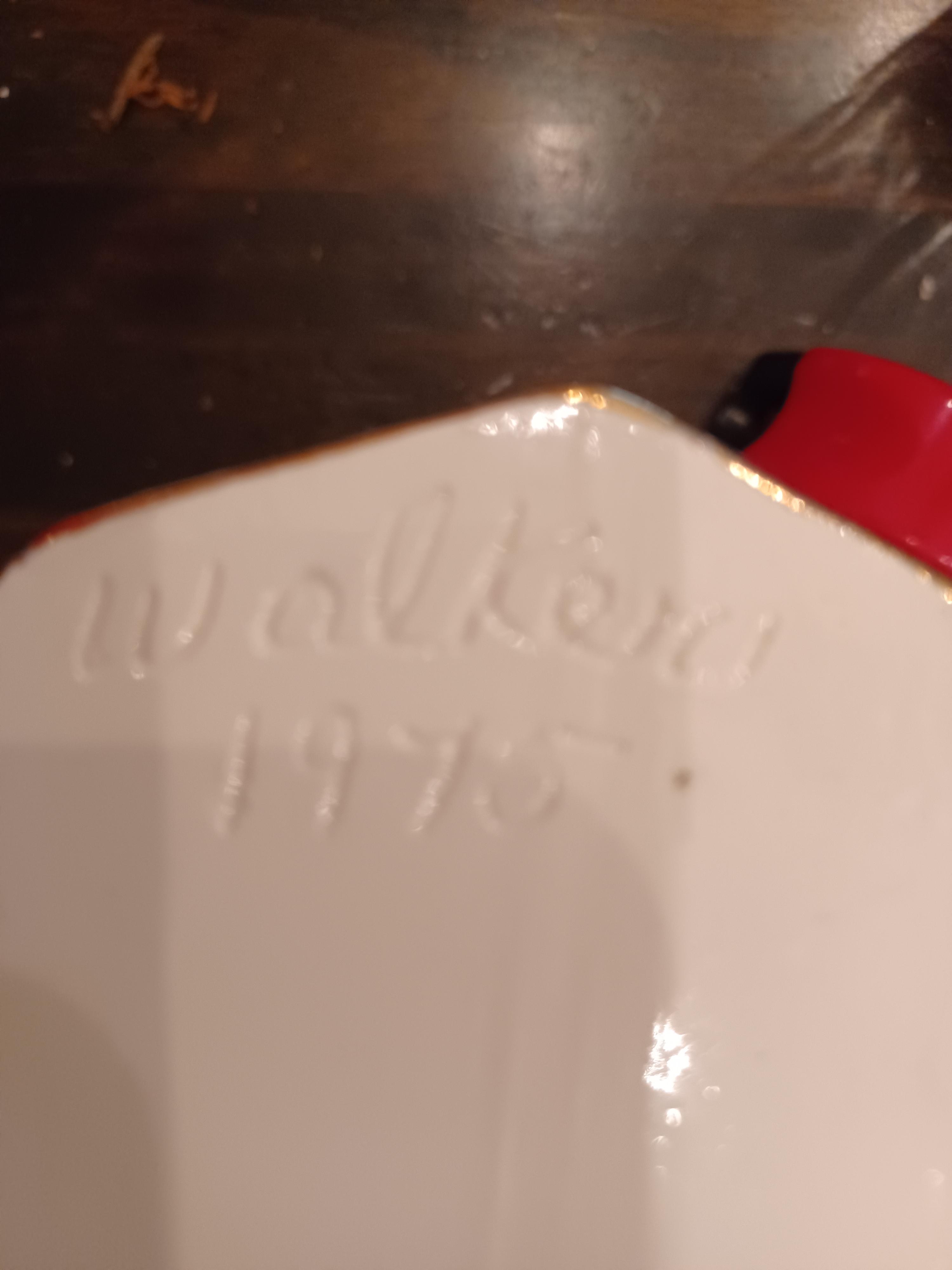 Tea pot, sugar dish, creamer dish. Walker 1975 is engraved on bottom of each.