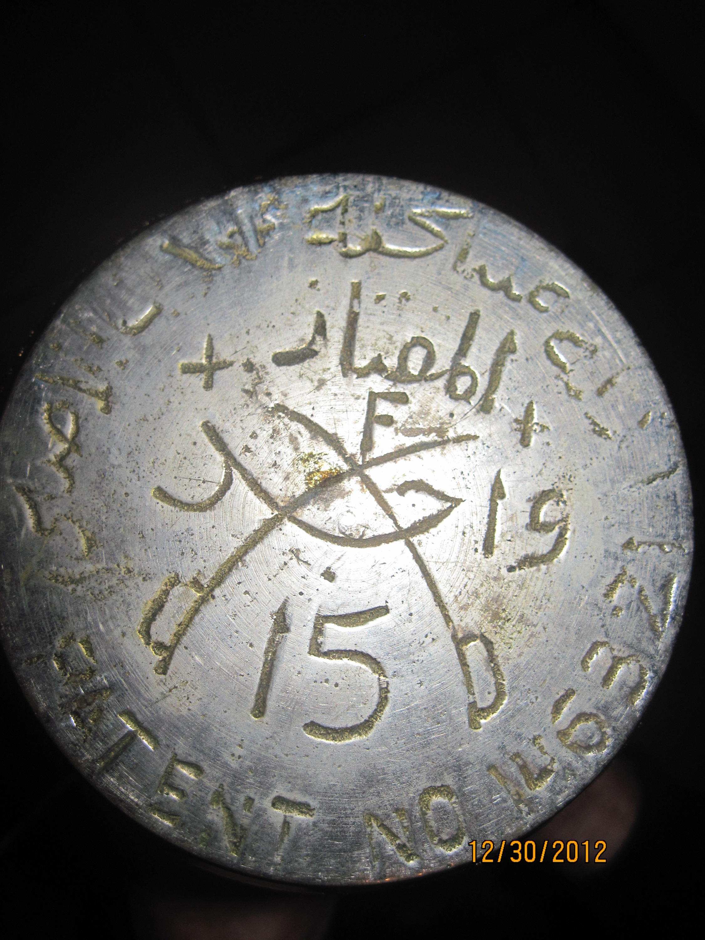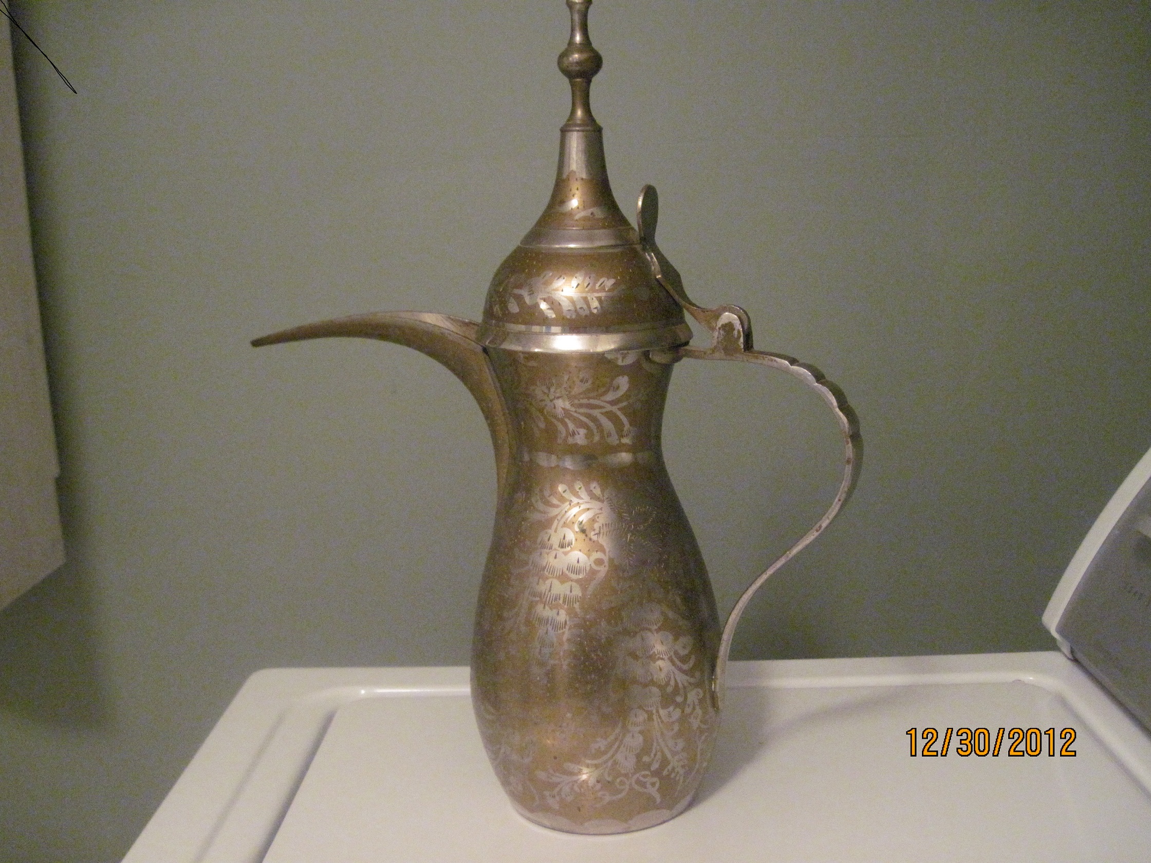 The patient number on the bottom is 146321 with the crossed swords. I believe it's a teapot or coffe pot origin Arabic / Turkish (guessing). I have included many pictures in hopes of finding information and value of this peice. Thanks so much.