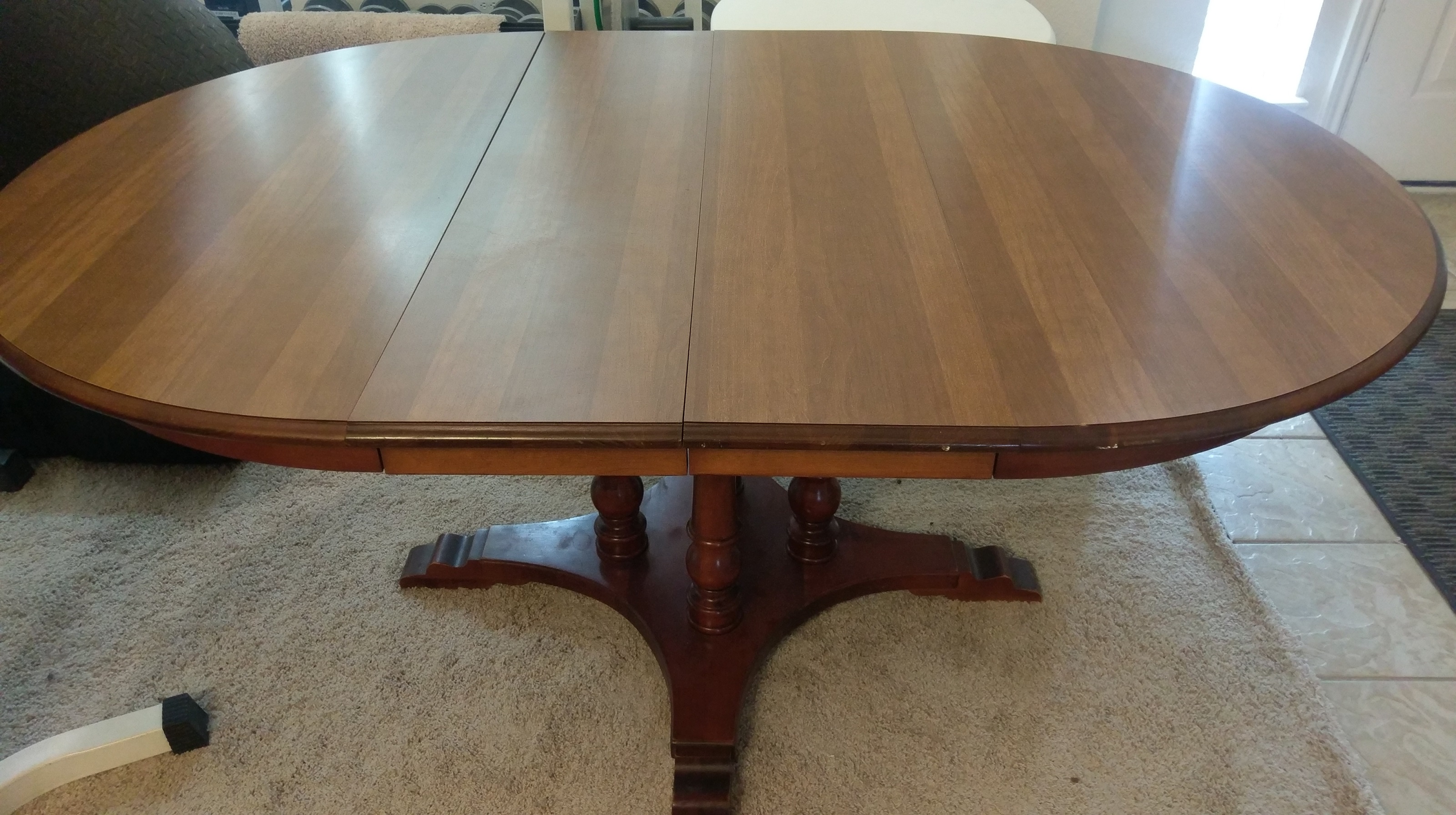 Diameter 48", extends to 72" with 2 aproned leaves.