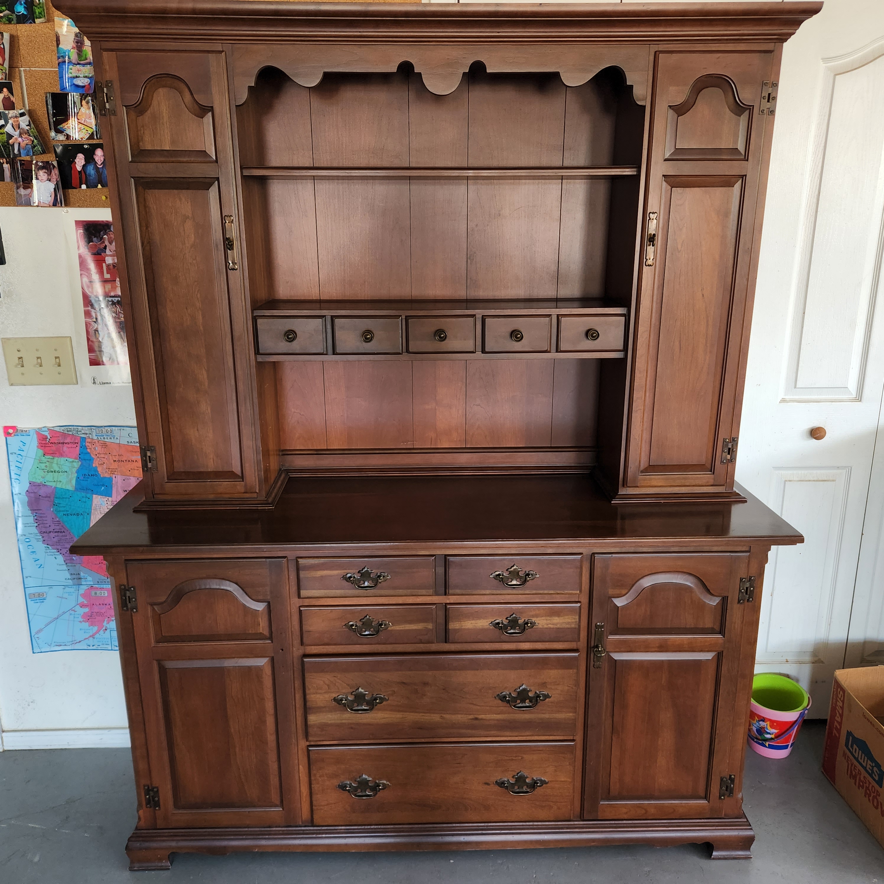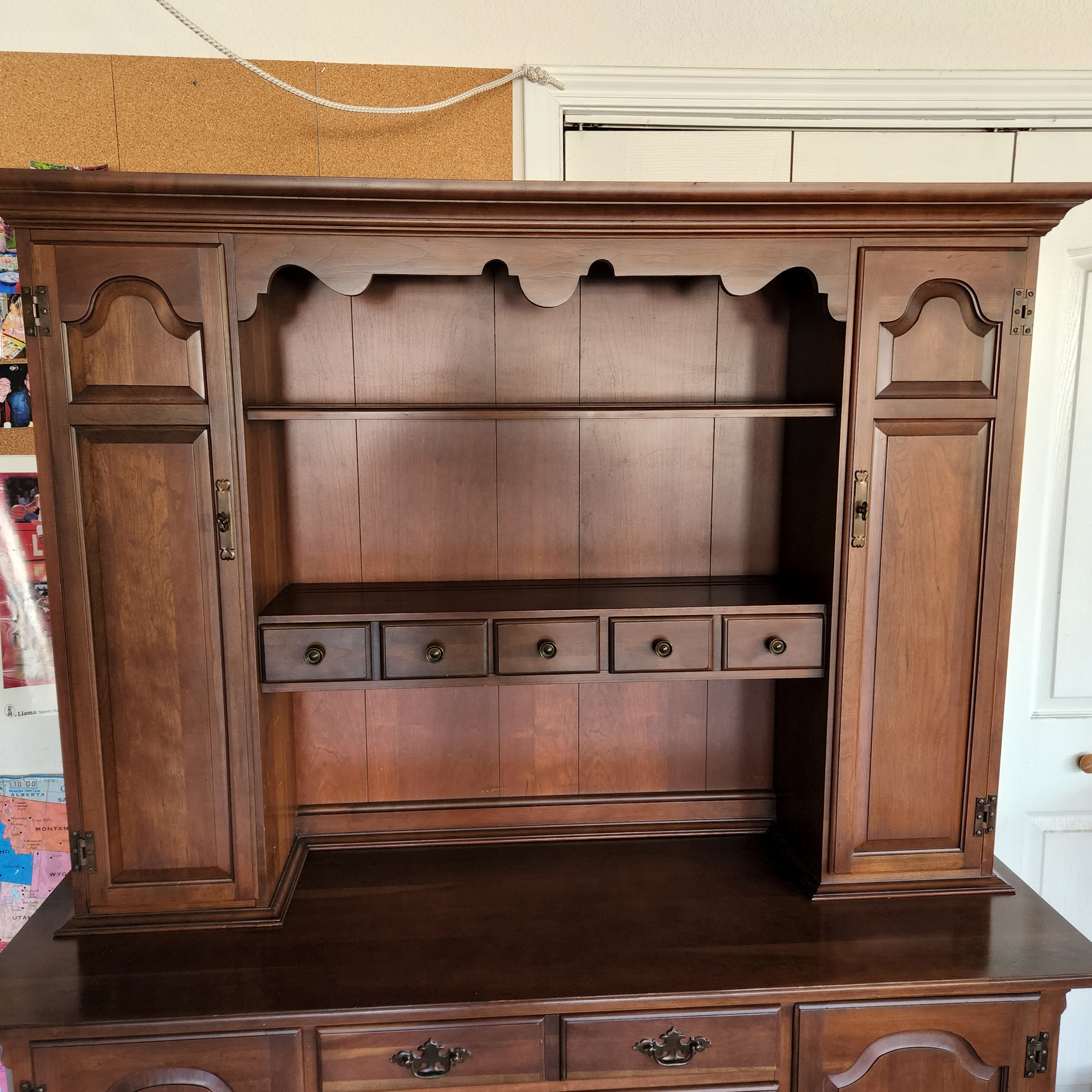 Tell City Furniture Hutch and Buffet furniture. Made out of Cherry wood and part of the Potomac collection. Been in family for numerous years and most recently used in the babies room. Good condition only because one of the knobs on the drawer is missing. Everything else is in good condition.