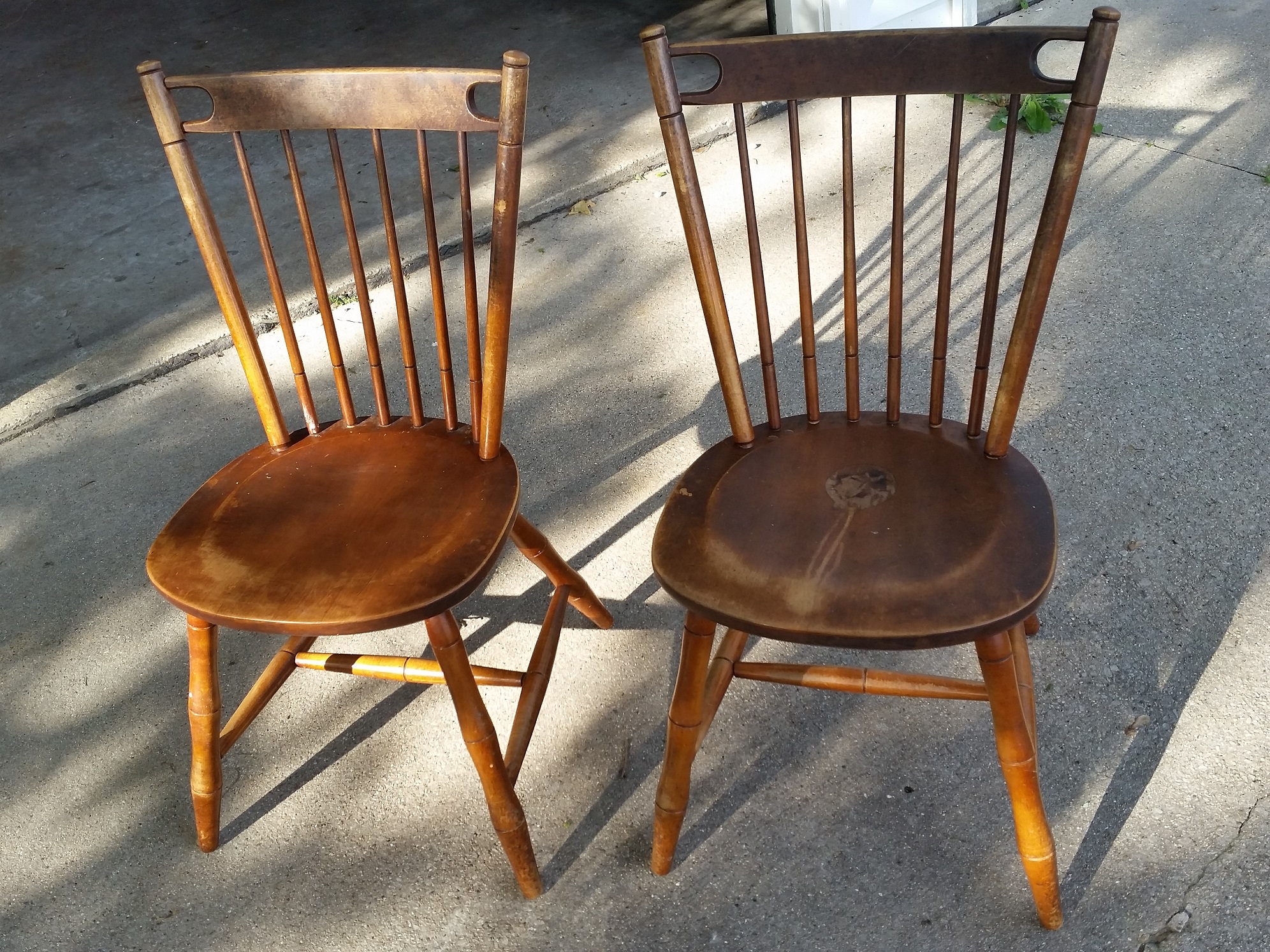 I bought these off of a friend of a friend, did some research once I saw the labels, and am curious as to what these are worth. I know that the drop-leaf tables were first made for a few years prior to the "Second World War, they sold a line of drop-leaf dining room tables which were manufactured by the Tell City Furniture Company; however, this line of tables was discontinued during the war. In 1947, a similar line was again put on the market, these made by a factory at Shoals, Indiana. Subsequently, tables and buffets were made by other factories, including the Tell City Desk Company'', but that's as much as I've been able to find out specifically.