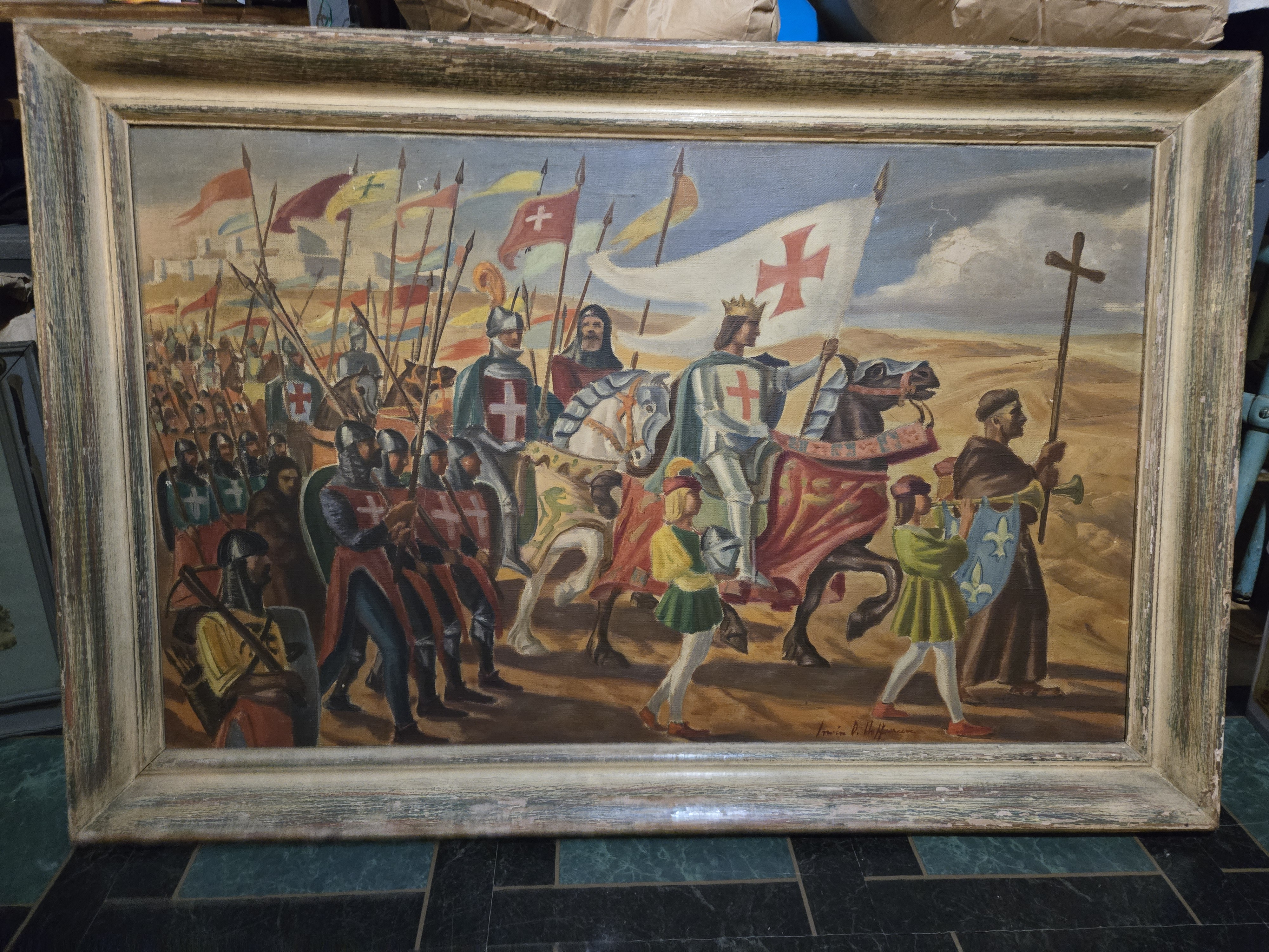 Irwin Hoffman was a well-known American realist painter and printmaker, recognized for portraits, urban scenes, and rural American life. His works often reflected social realism, focusing on working-class subjects rather than medieval or Crusader themes.