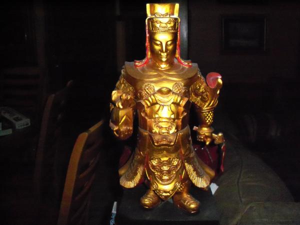 This is an asian art piece. It is a temple guard. I don't know a lot about him but it is