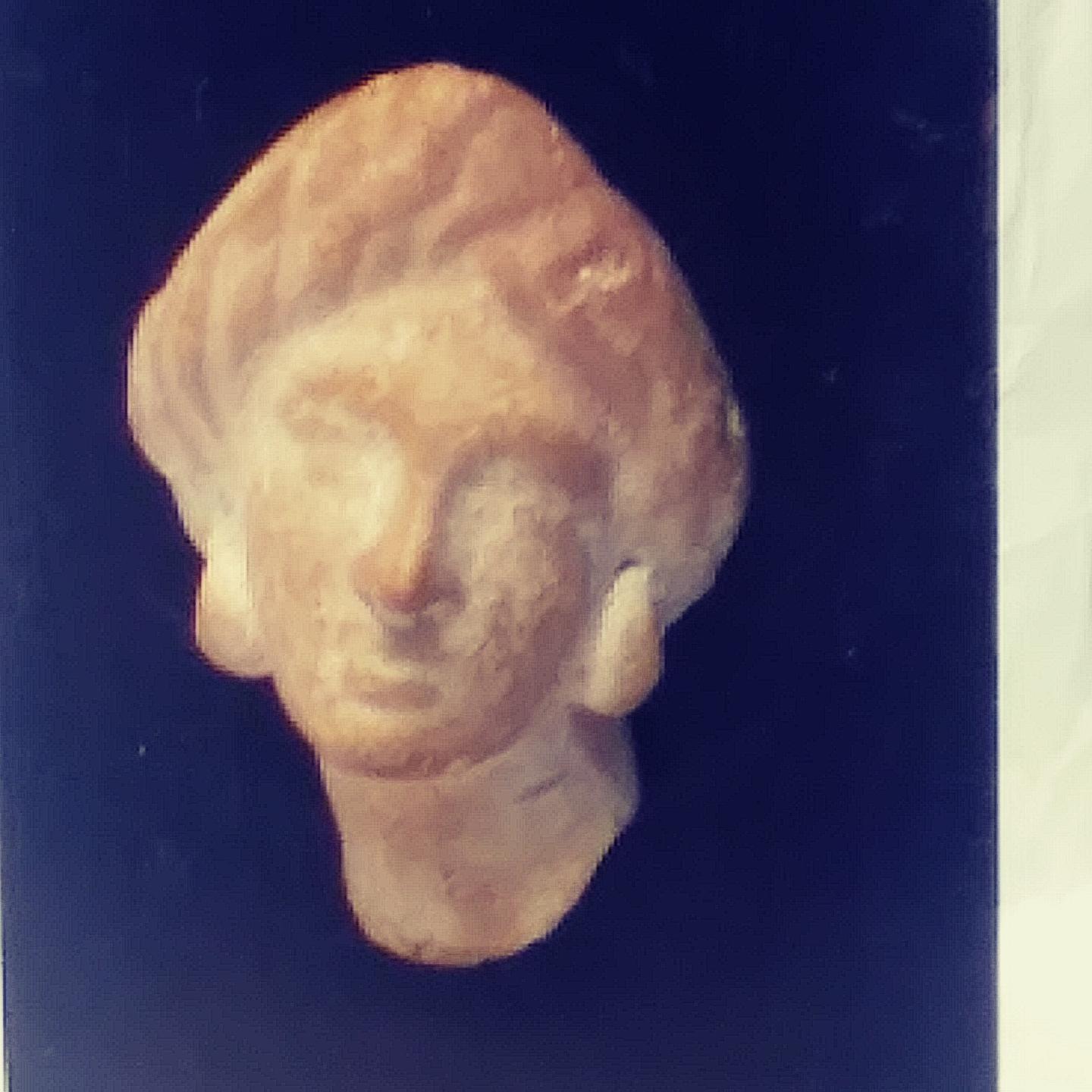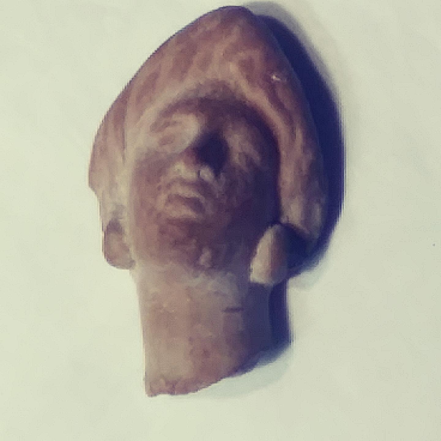 The item is a small hanging terracotta face of what I believe is a Roman woman's face.