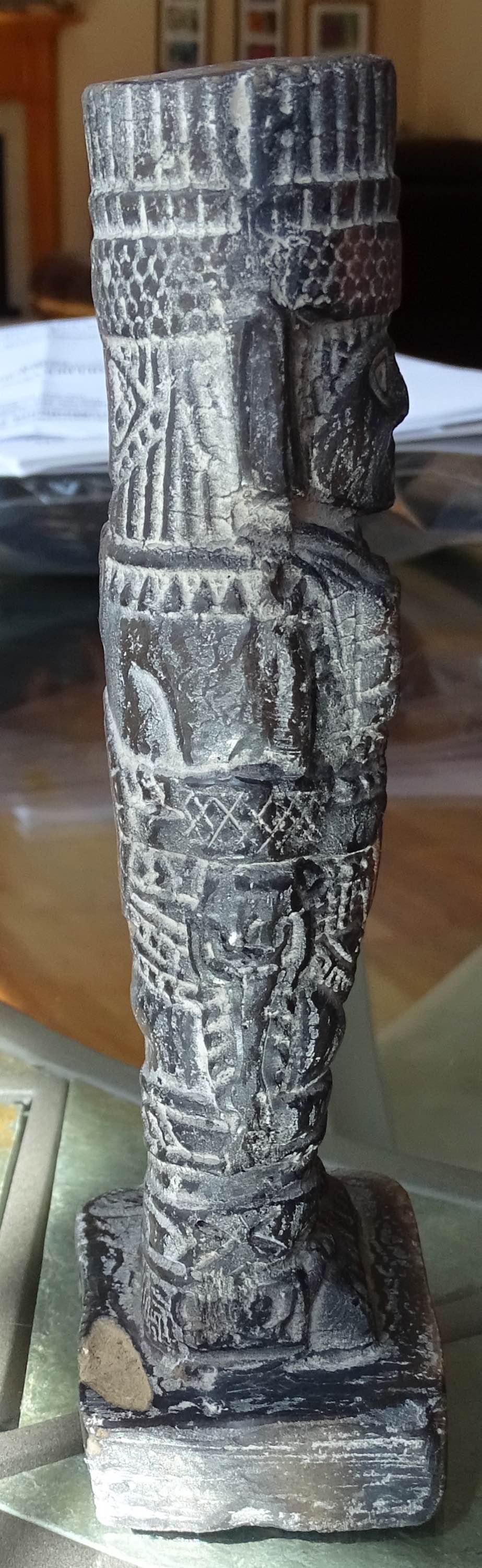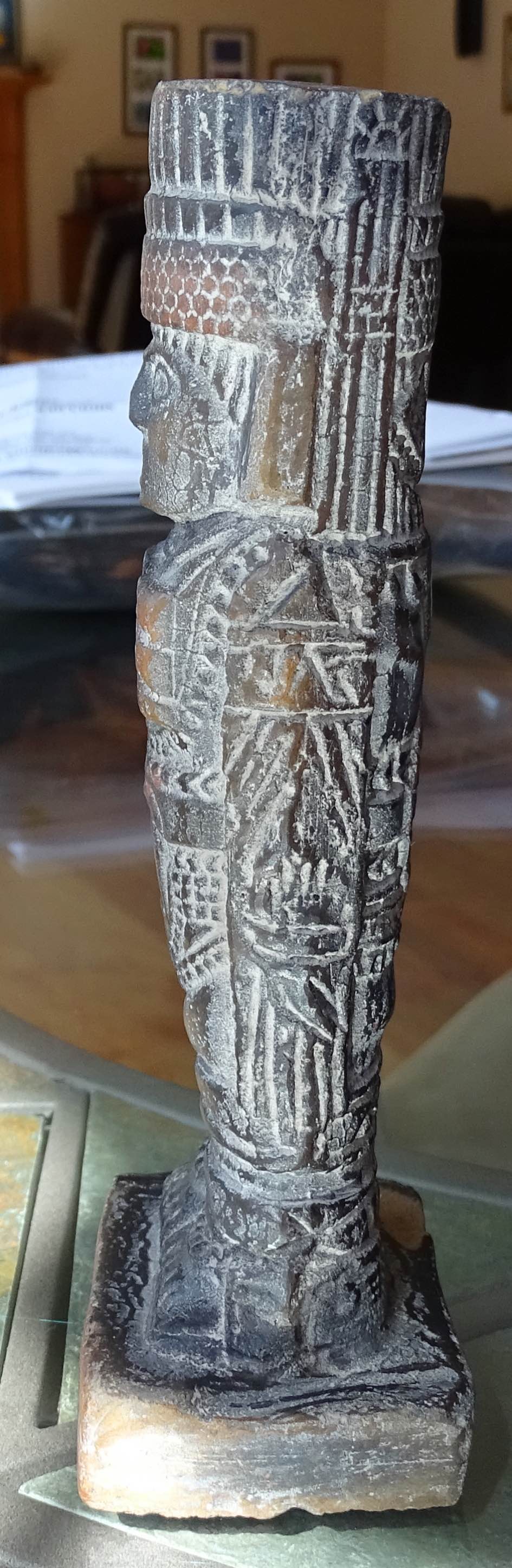 Small statue Terracotta colored of a man but not sure what figure resembles. When the statue is wet it smells like clay.