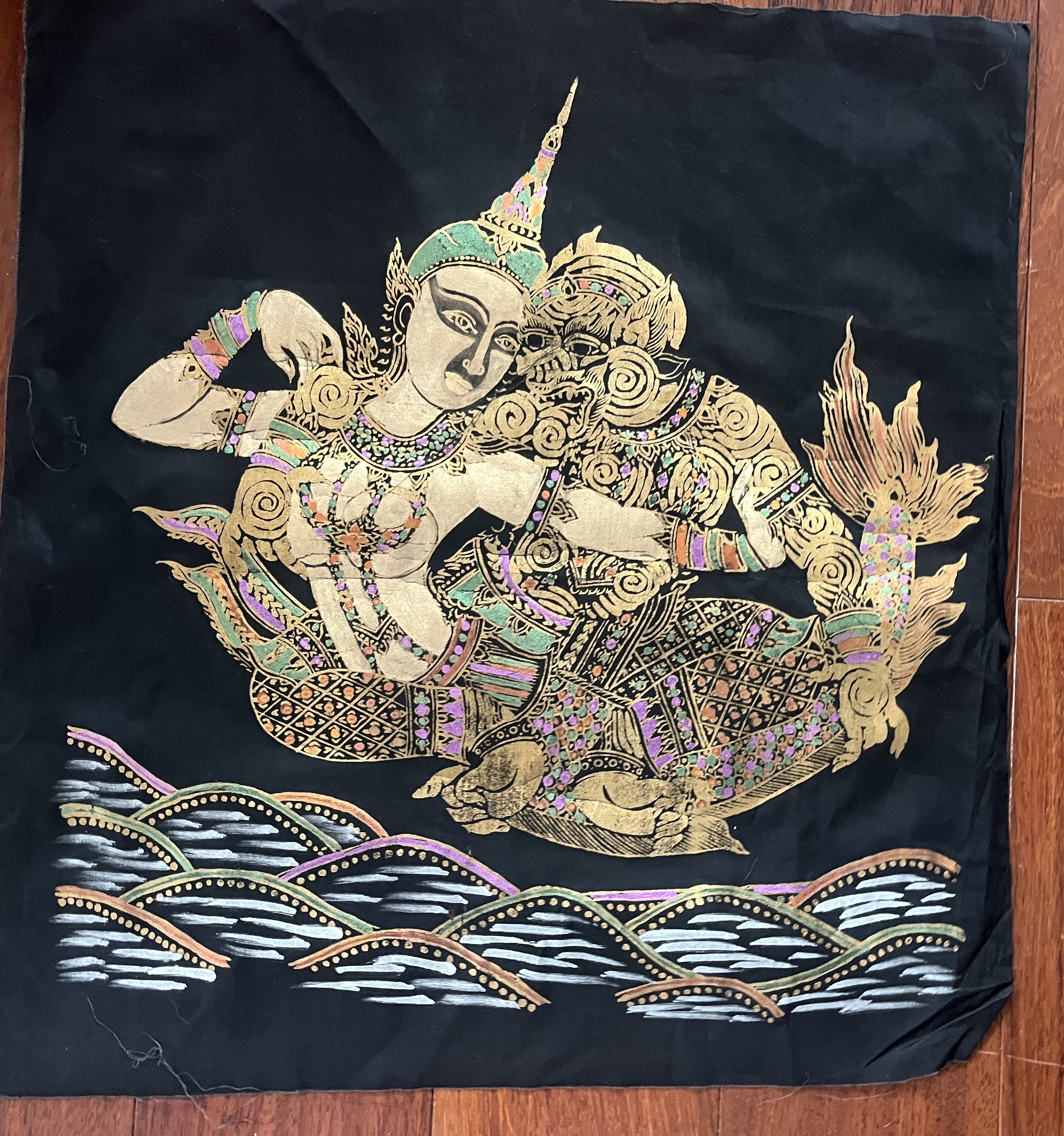 Thai mid 19th century hand painted art on silk