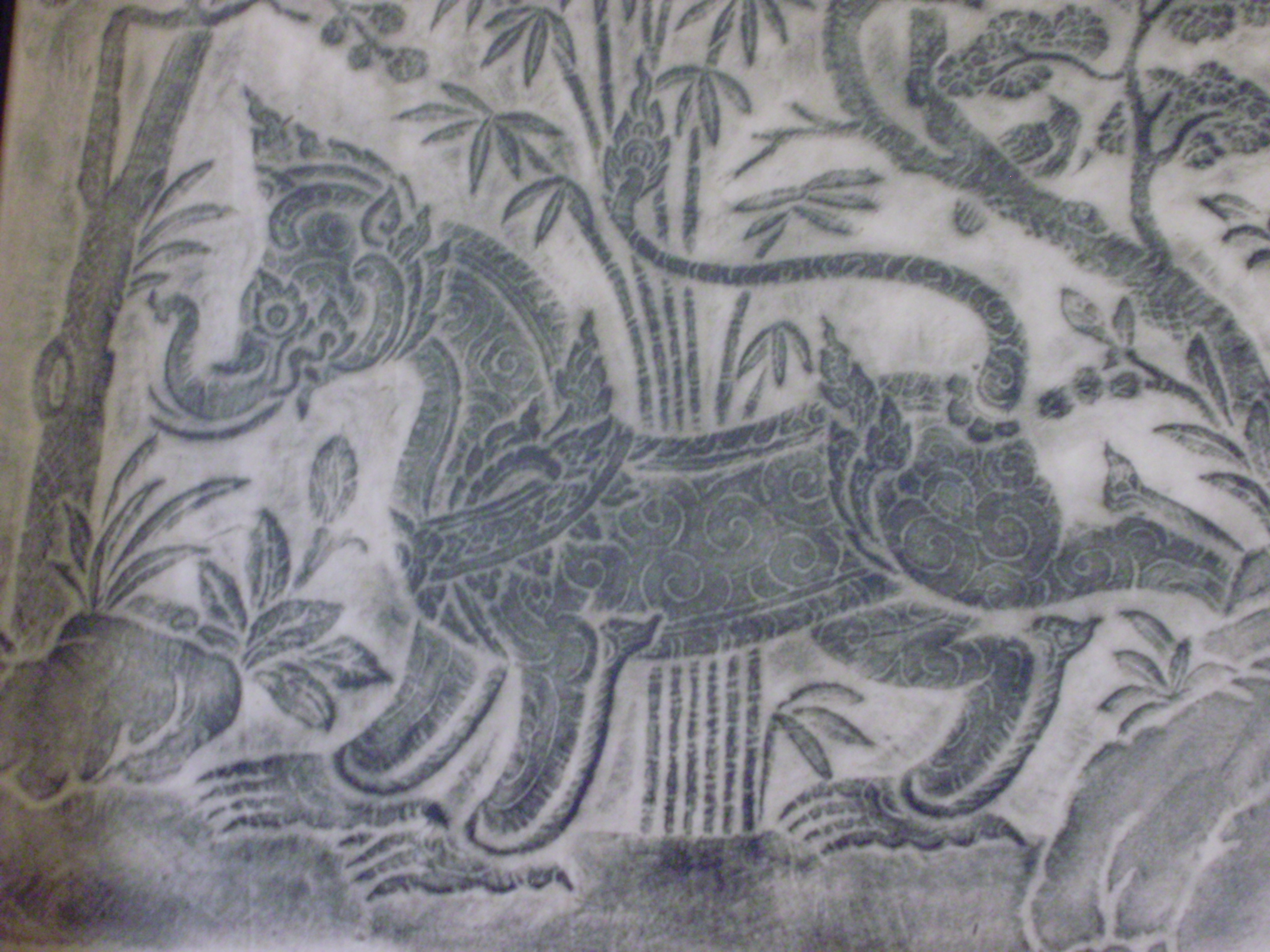 Original Thai Temple Rubbing on Rice Paper. Professionally Framed under Glass in