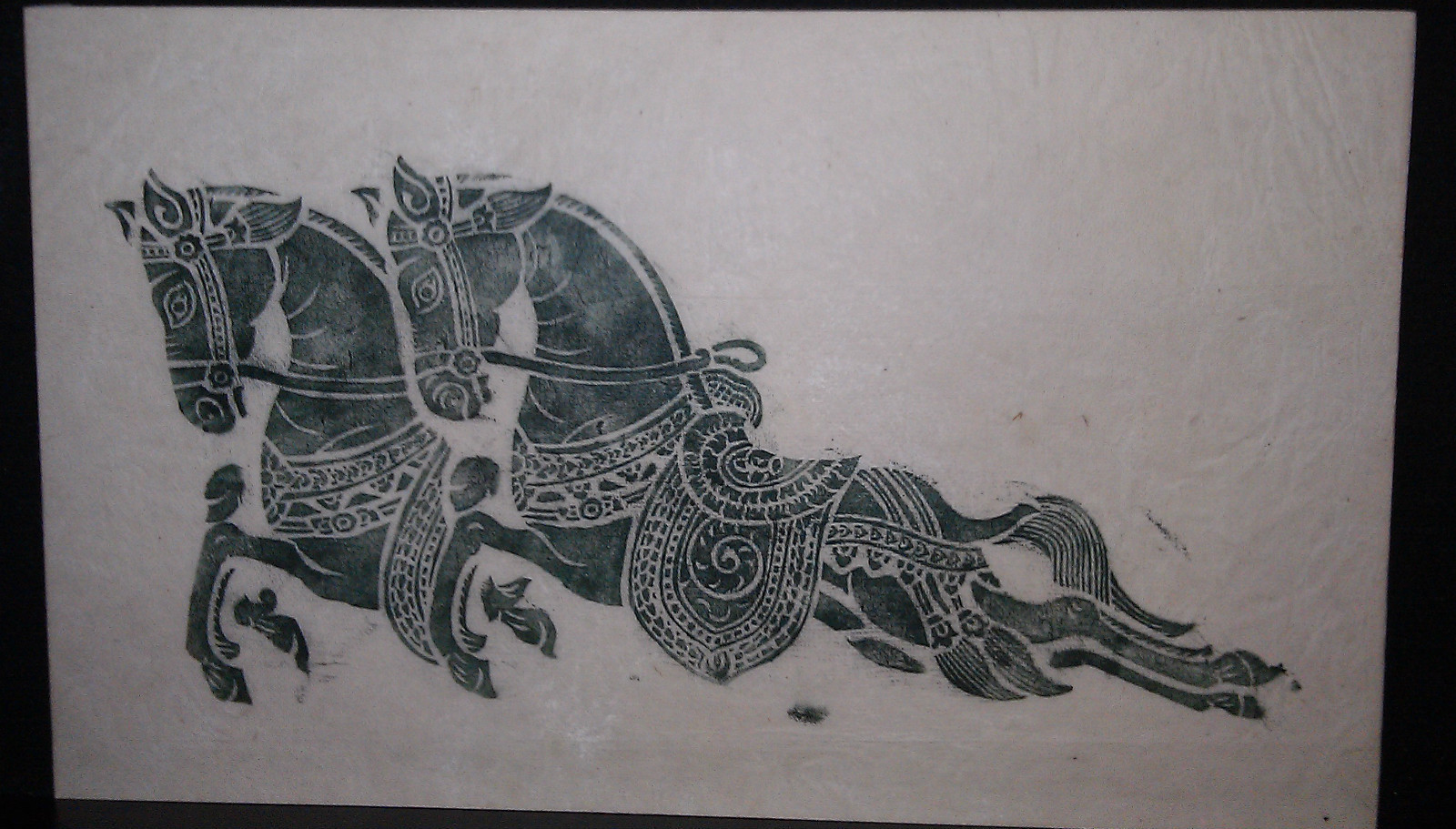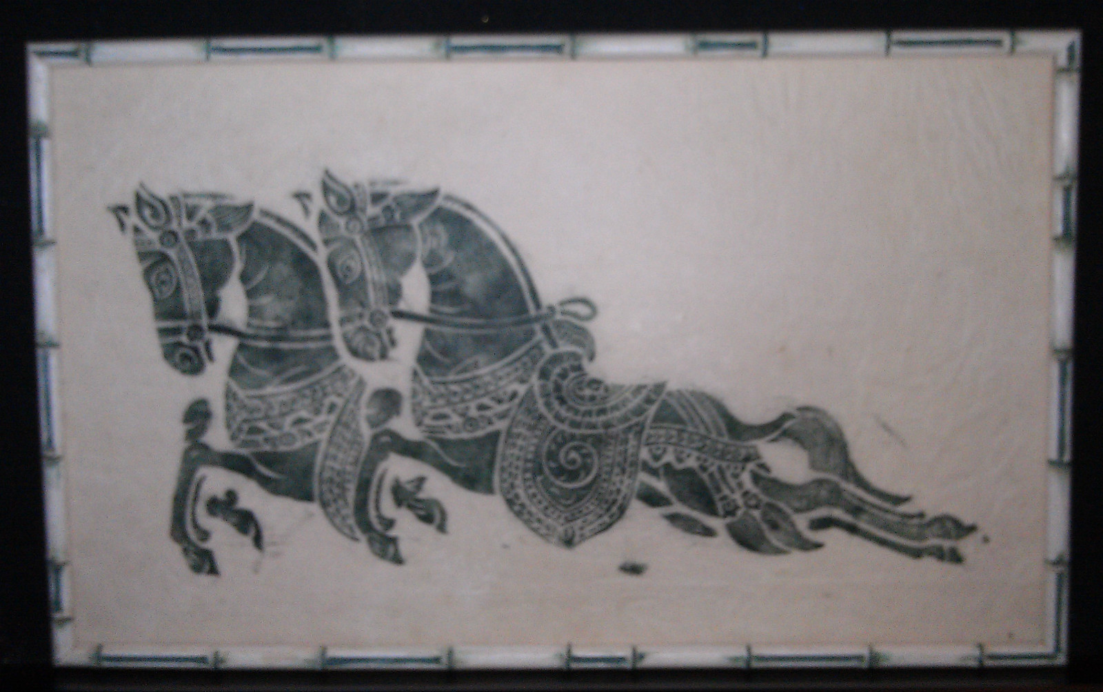 The Horses on the white rice paper stand out with the color in the frame