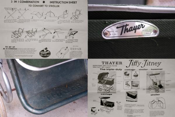 I have stroller, all parts, and the 2 pages of original paperwork. The stroller is in great condition other than some moisture damage on the removable pad pictured here. I am trying to find out more information on this Thayer's Model 1023, triple duty carriage...stroller....bassinet.