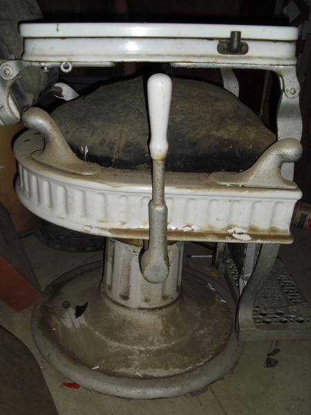 This chair was stored since 1972 in a garage. All the porcelin seems to be in excellent shape. All parts are still in tact. I dont know much about this chair and would like to find out if somebody can tell me a little more about it. Also looking to have it professionally restored. Hydrolics are in good working condition. I am told it is from the early 1900's but that comes from a source I am not to sure about.