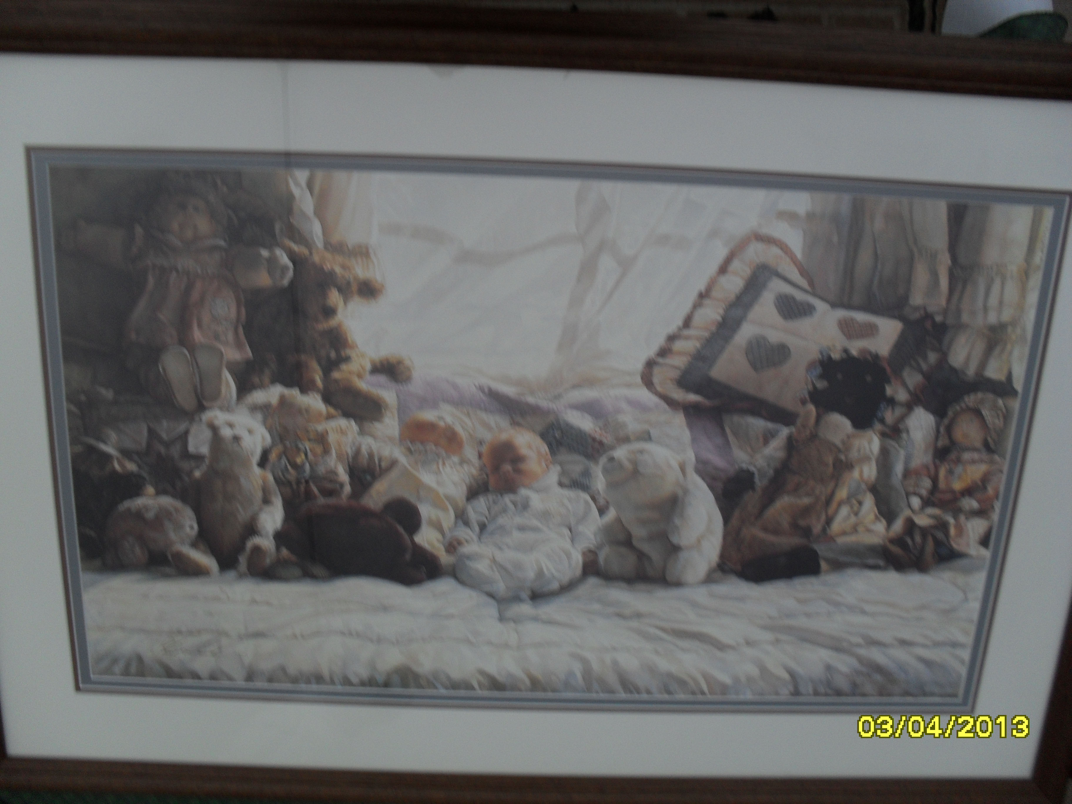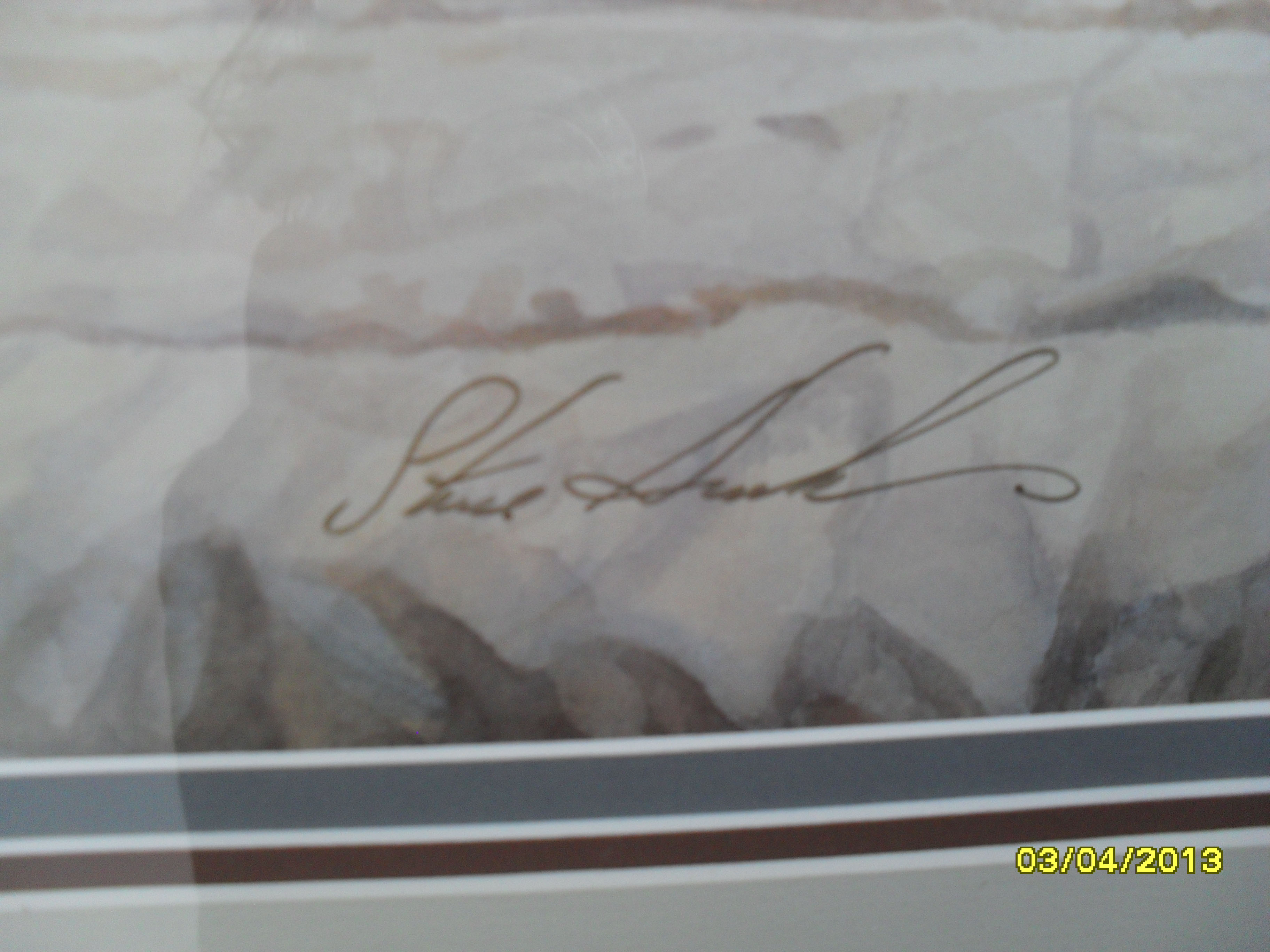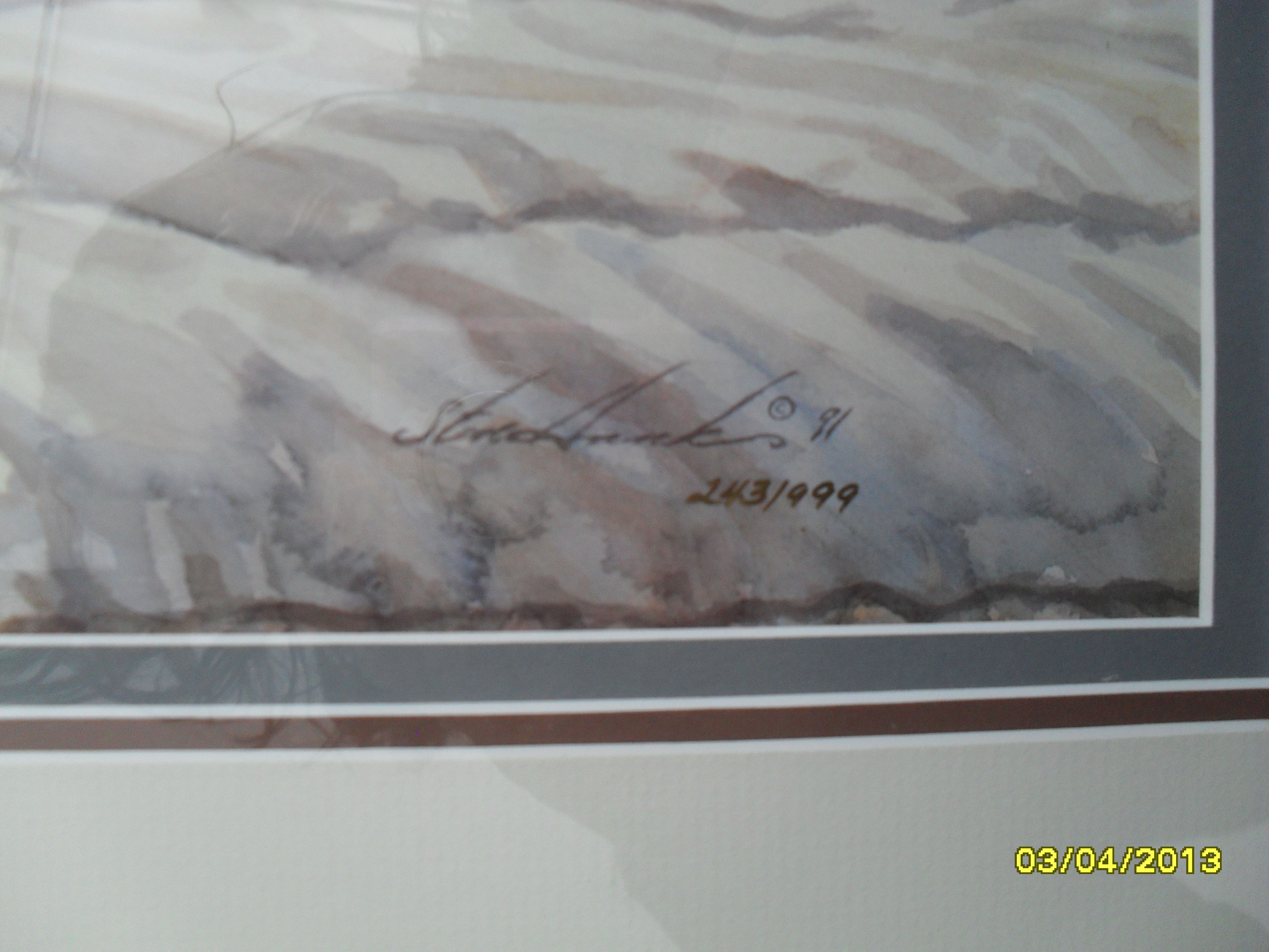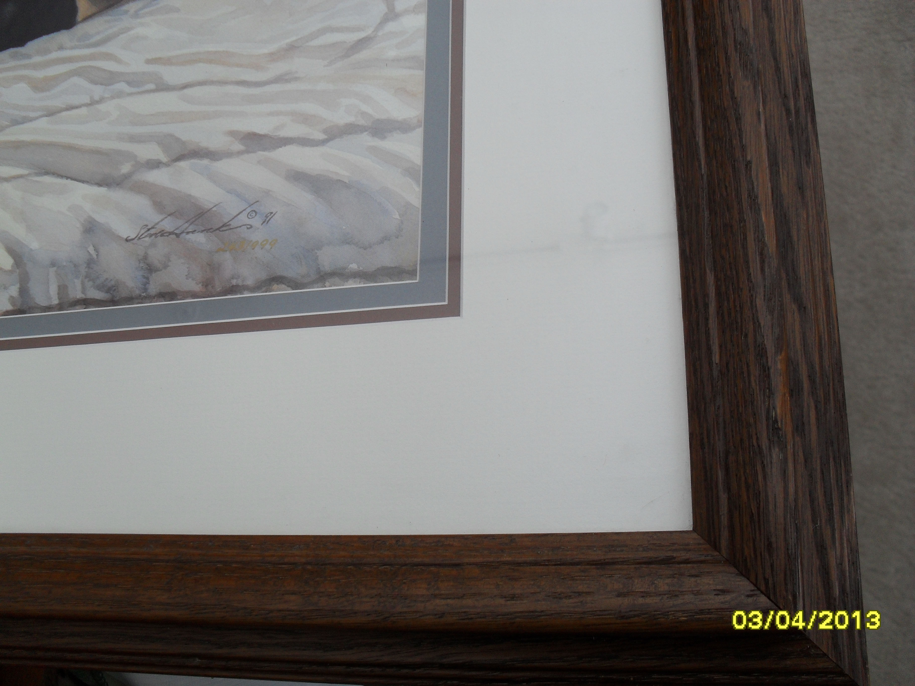 This is framed and matted, with original artist signature and numbering 243/999 with a printed signature and Copyright 91 in the corner. Published by Hadley House.
