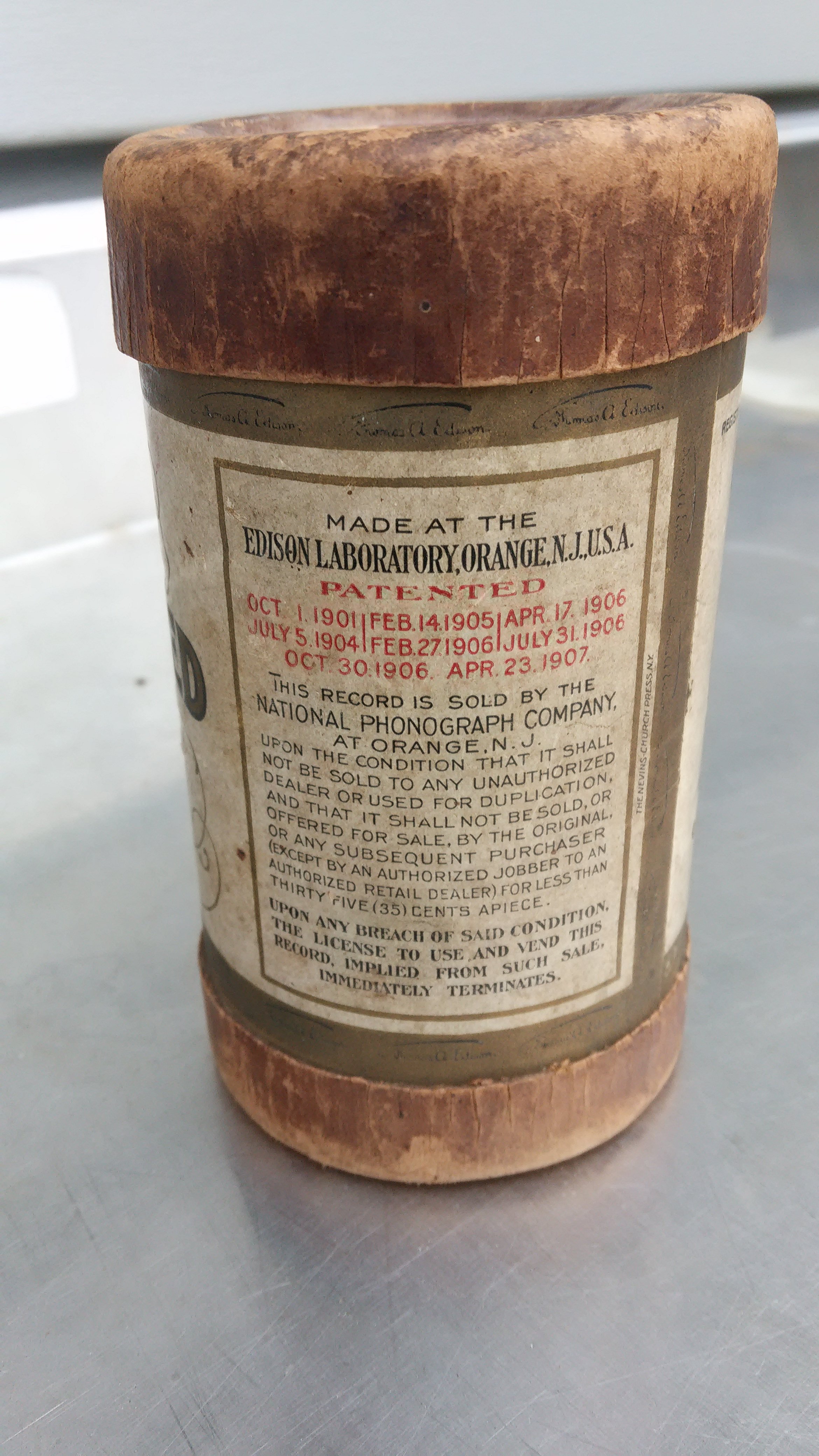 1904 Thomas A Edison Gold Moulded Record, "Piccolo Nigger Fever 2809"