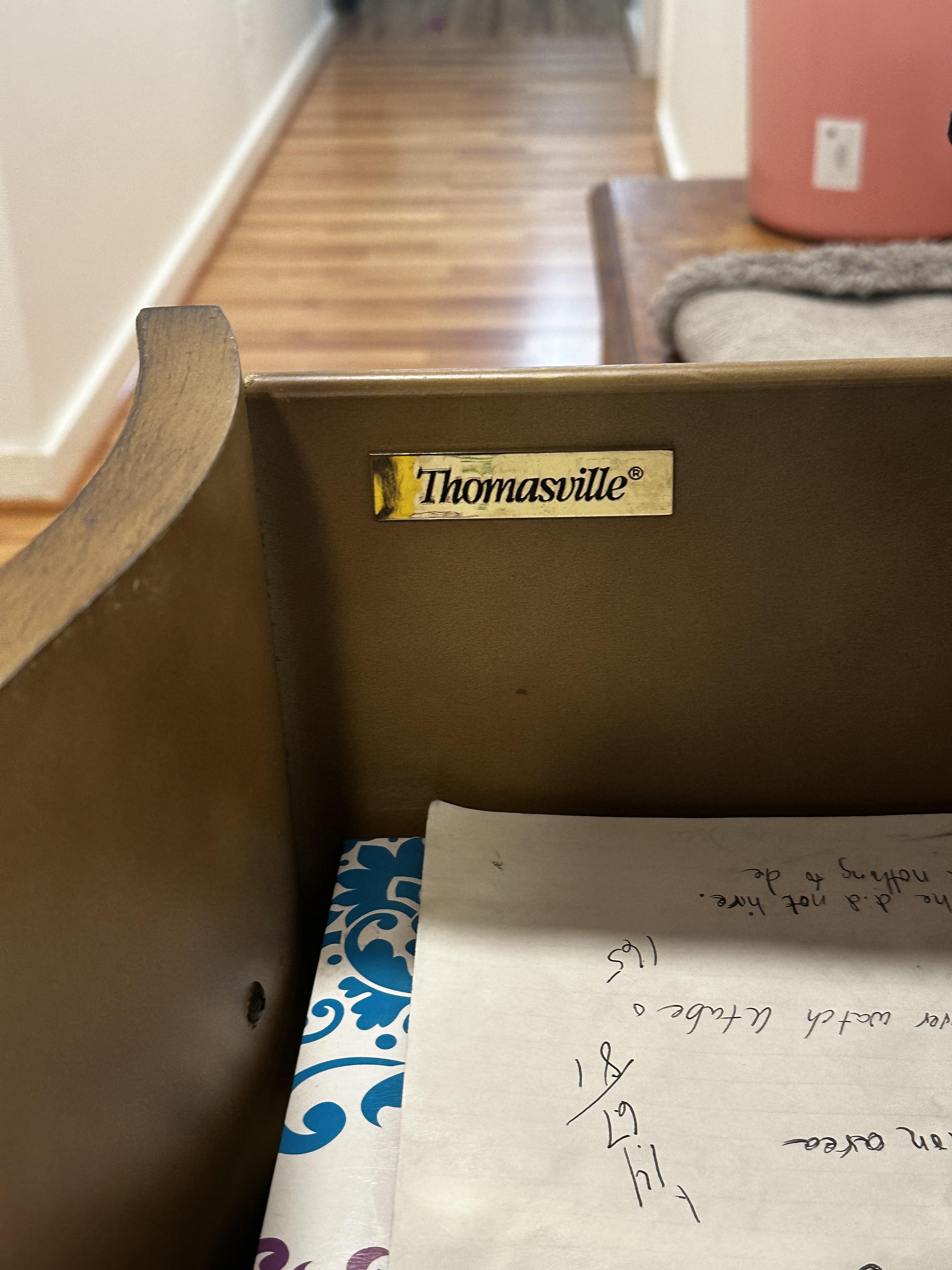 I dont know much about it at all. The only thing I see "wrong" with it are a couple spots on the top that the paint or stain has come off. None of the little spots are chips of the wood that have came out or anything like that.