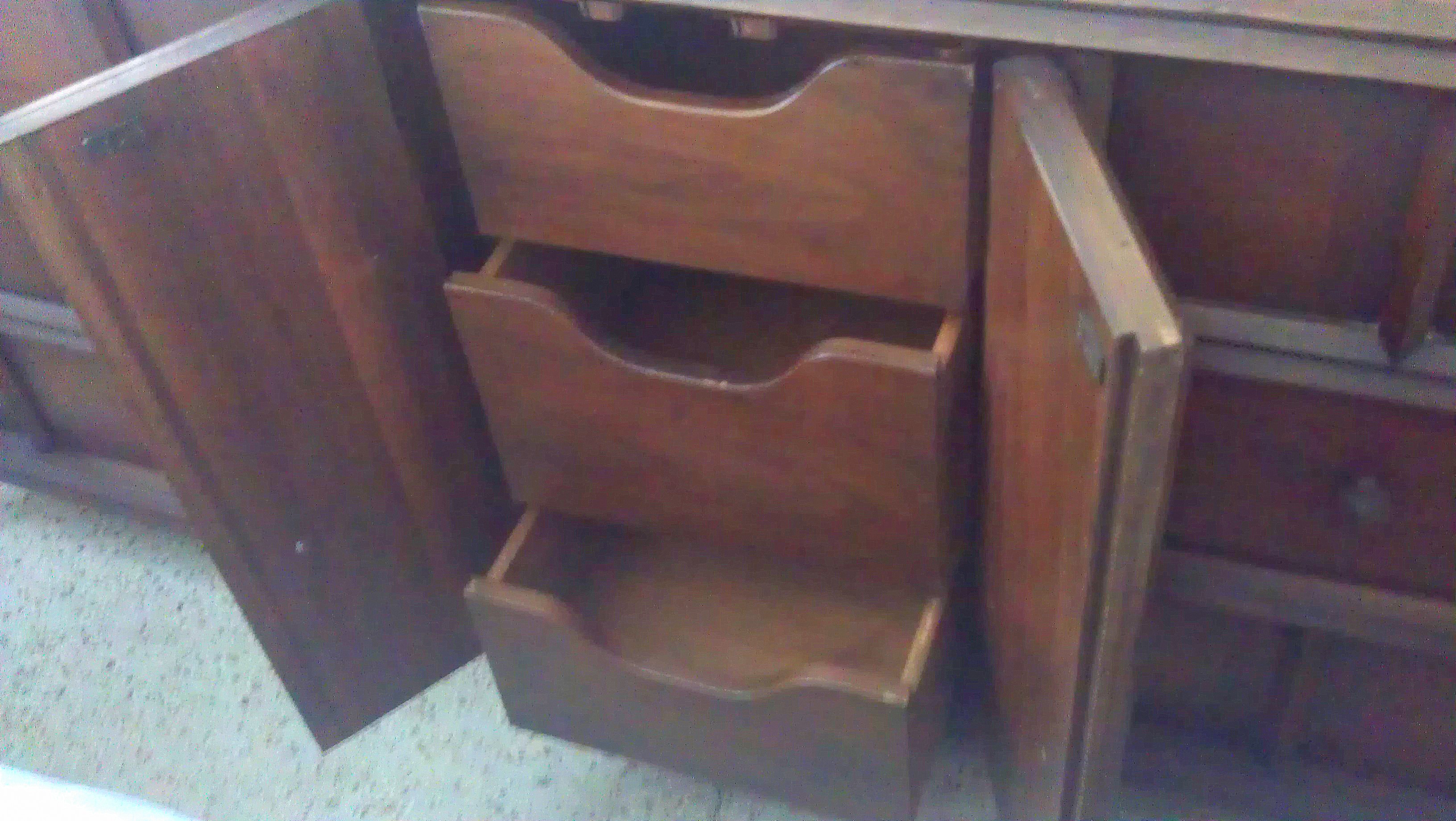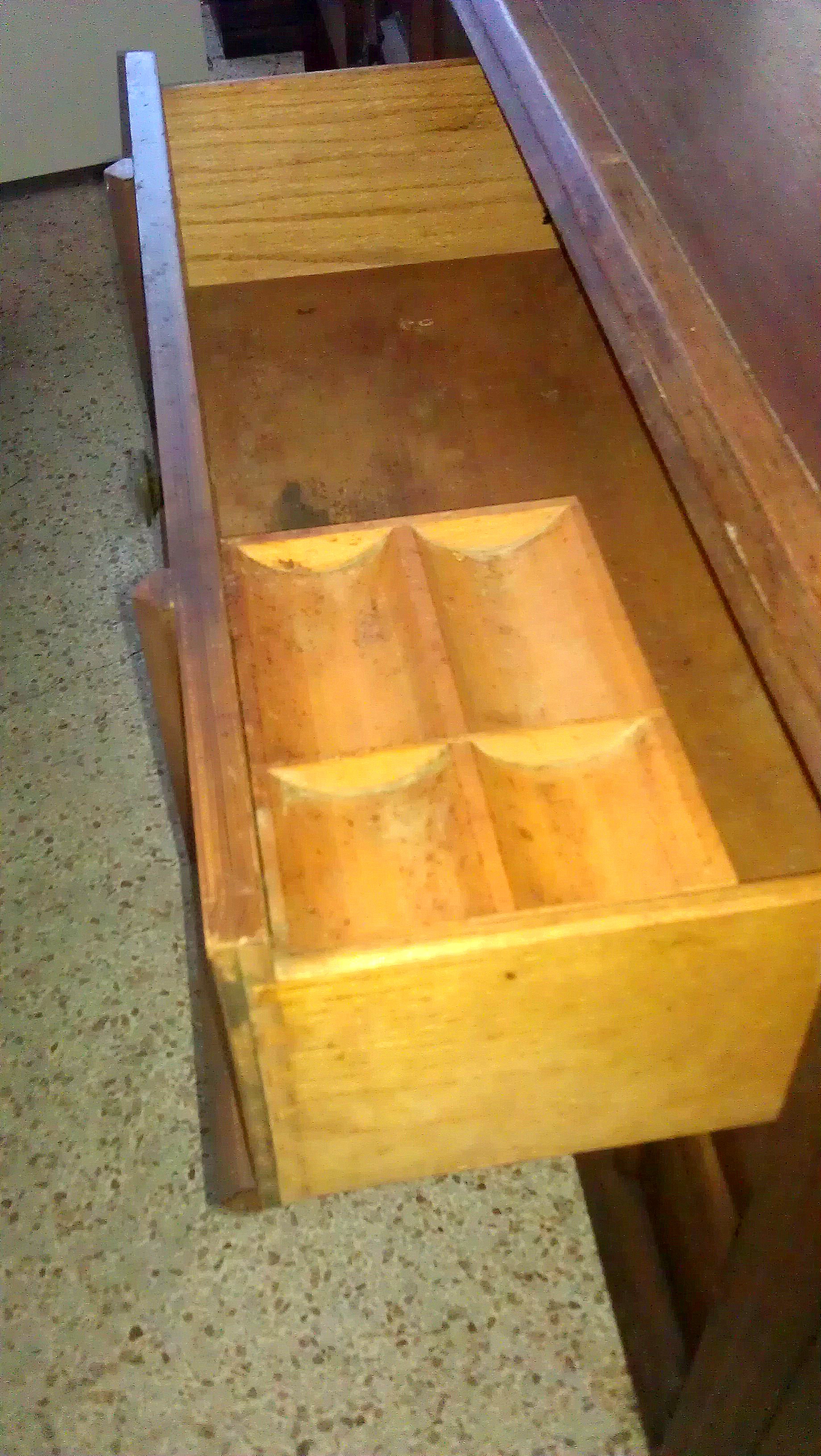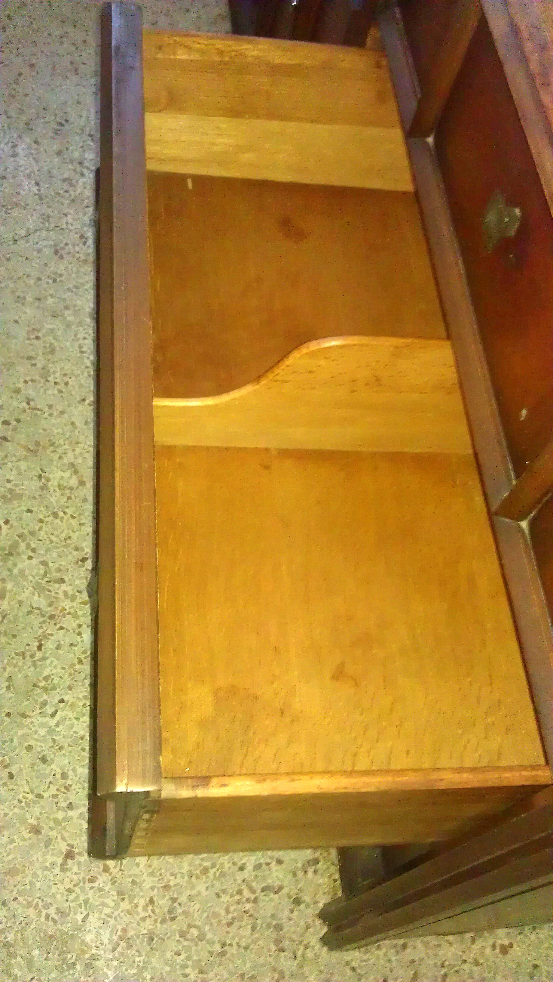 Thomasville Furniture Corporation c. 1967 imprinted on the back, pictured below. Thomasville logo imprinted on left hand door, pictured below. 9 drawers in total, 3 smaller drawers are behind 2 doors in the middle. Upper right drawer has wooden change organizer. Middle right drawer has wooden drawer divider. Solid Wood with dovetail joints. VERY HEAVY. Just got it home from thrift store to find the nice surprise imprinted on left hand drawer "Thomasville" now I am curious about the value, pictured below is as-is condition. I would like to restore. What is the appraisal value as-is and restored? Any recommendations concerning restoration greatly appreciated. Thank you!