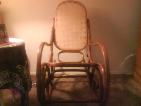This appears to be an authentic bentwood rocker signed by Thonet and made in Poland. It may be made of beechwood. It has the letter and number "2Y" located on the back side of the seat. It also has a "2Y" on a supporting member and on the left-to right rear and front bottom straight spacing rods. There is a "2Y" on the back support piece. There is another piece that I think says "33" to the best I can decipher. The oval piece below the back support reads "D5."