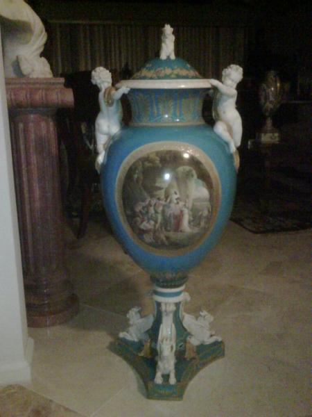 Unmarked. Applied Putti and Chimera. Mythological hand-painted reserves on front and back.