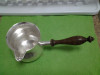 I tried researching online and the only 3 legged tea strainer with a wooden handle that I was able to find was a 19th century strainer by Francois-Julien Doyon; all other pictures of tea strainers don't have legs. The only identifying mark I can see is a "90" on the bottom. It's 5 3/4" in legnth. Bowl is 2 3/8" in diameter, 1 " deep and scalloped. the Handle is 3 3/4" long with 2 1/4" of it being wood.