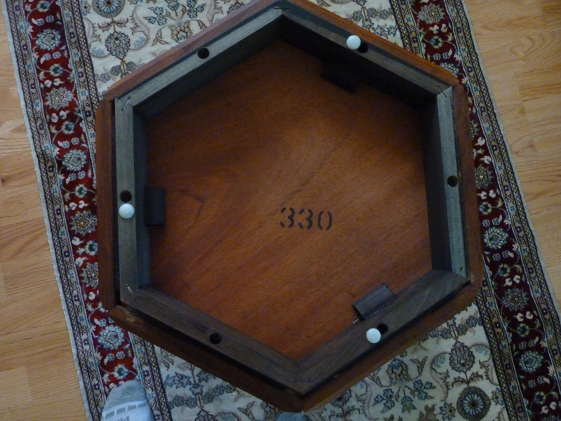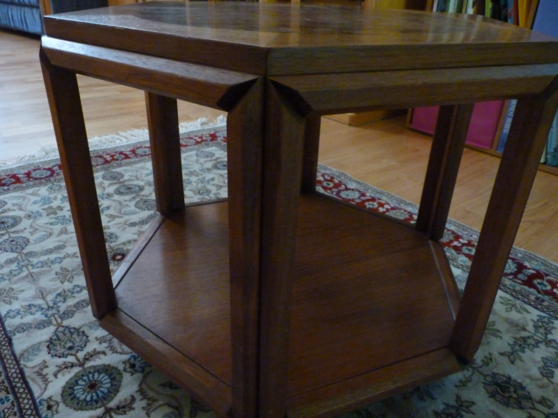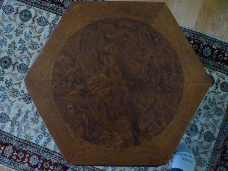 Three Walnut Hexagonal tables with Carpathian Elm Inserts by Brown & Saltman, circa 1970s.